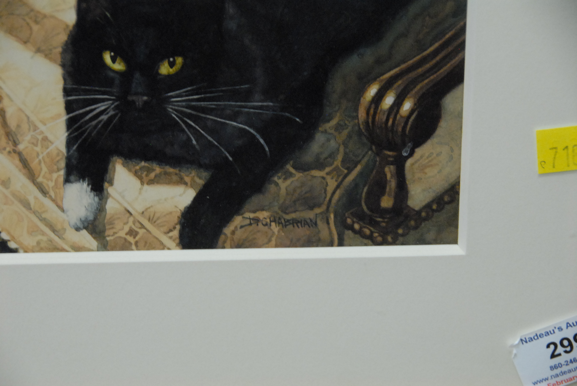 Lot 299: Deborah L. Chabrian 20th/21st Century black cat watercolor, 5 x 10 1/2.