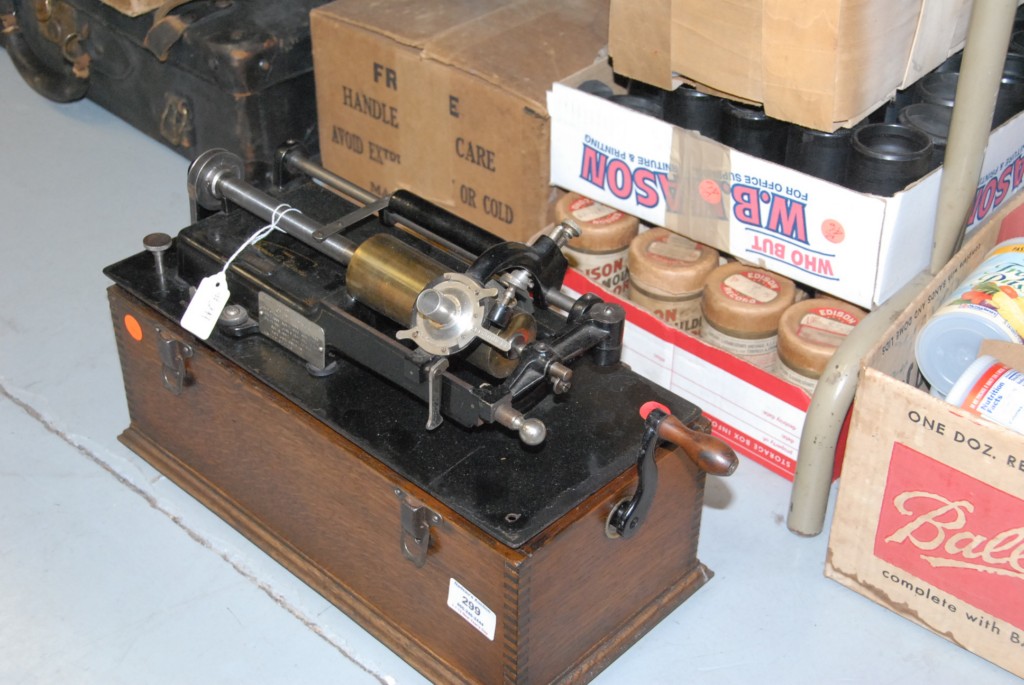 Edison phonograph, no horn and eight boxes of cylinder records.