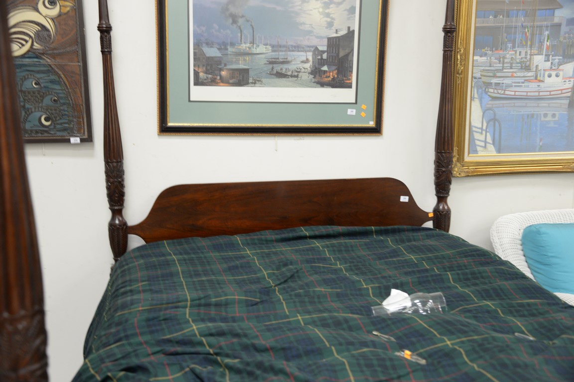 Mahogany queen size four post canopy bed. ht. 87 in.