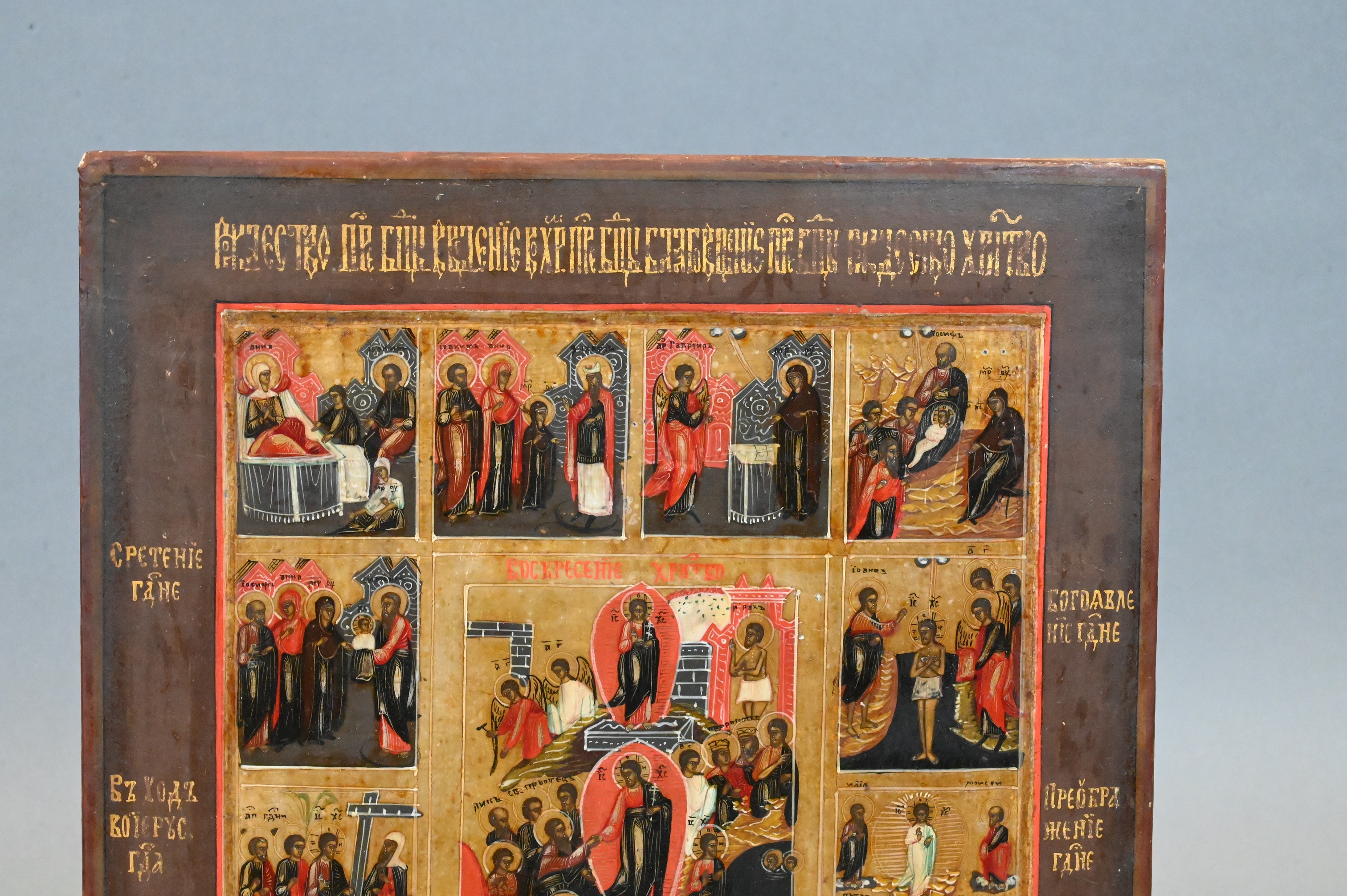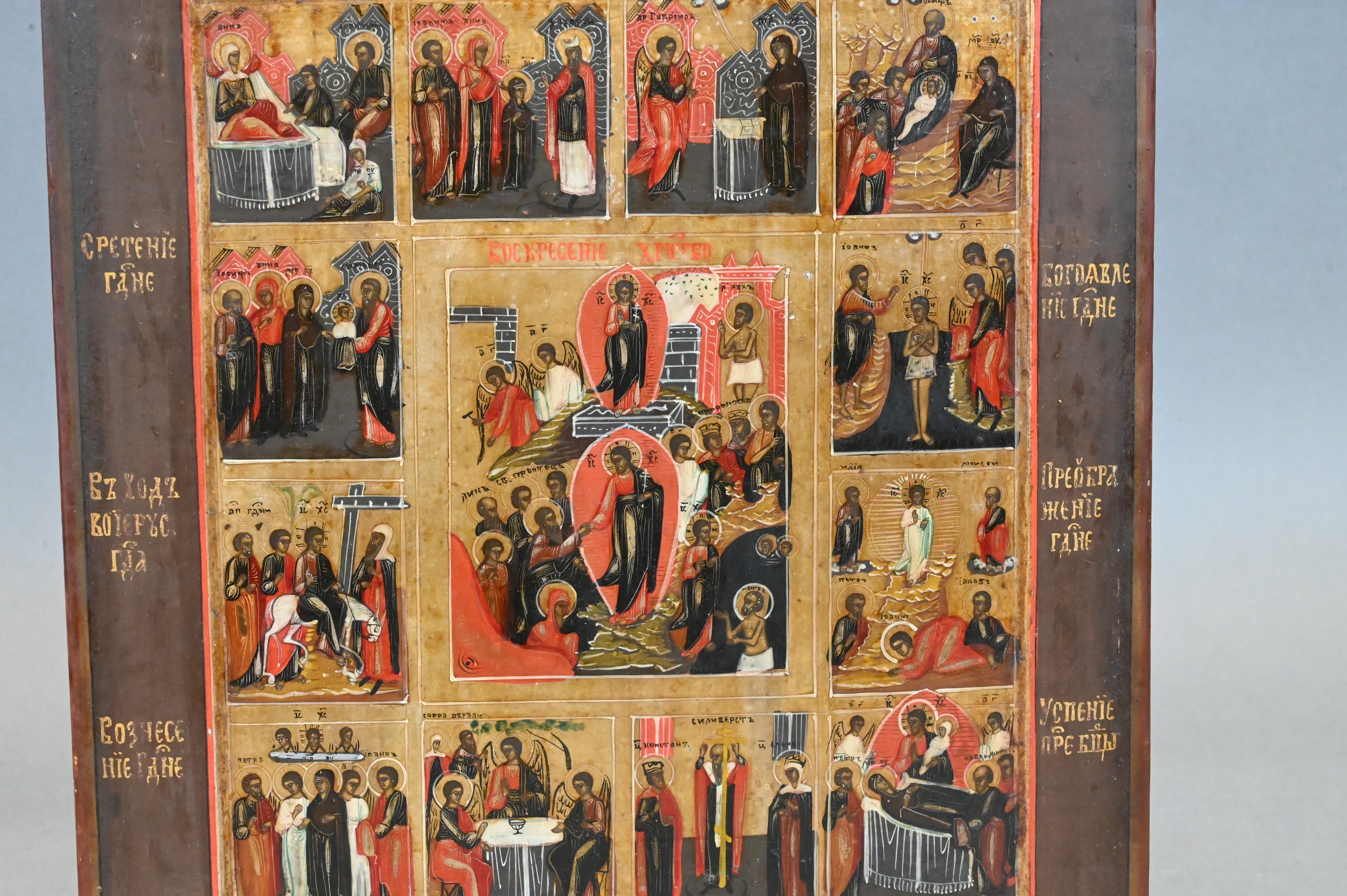 Lot 299: Russian Icon of The Twelve Great Feasts and Resurrection
