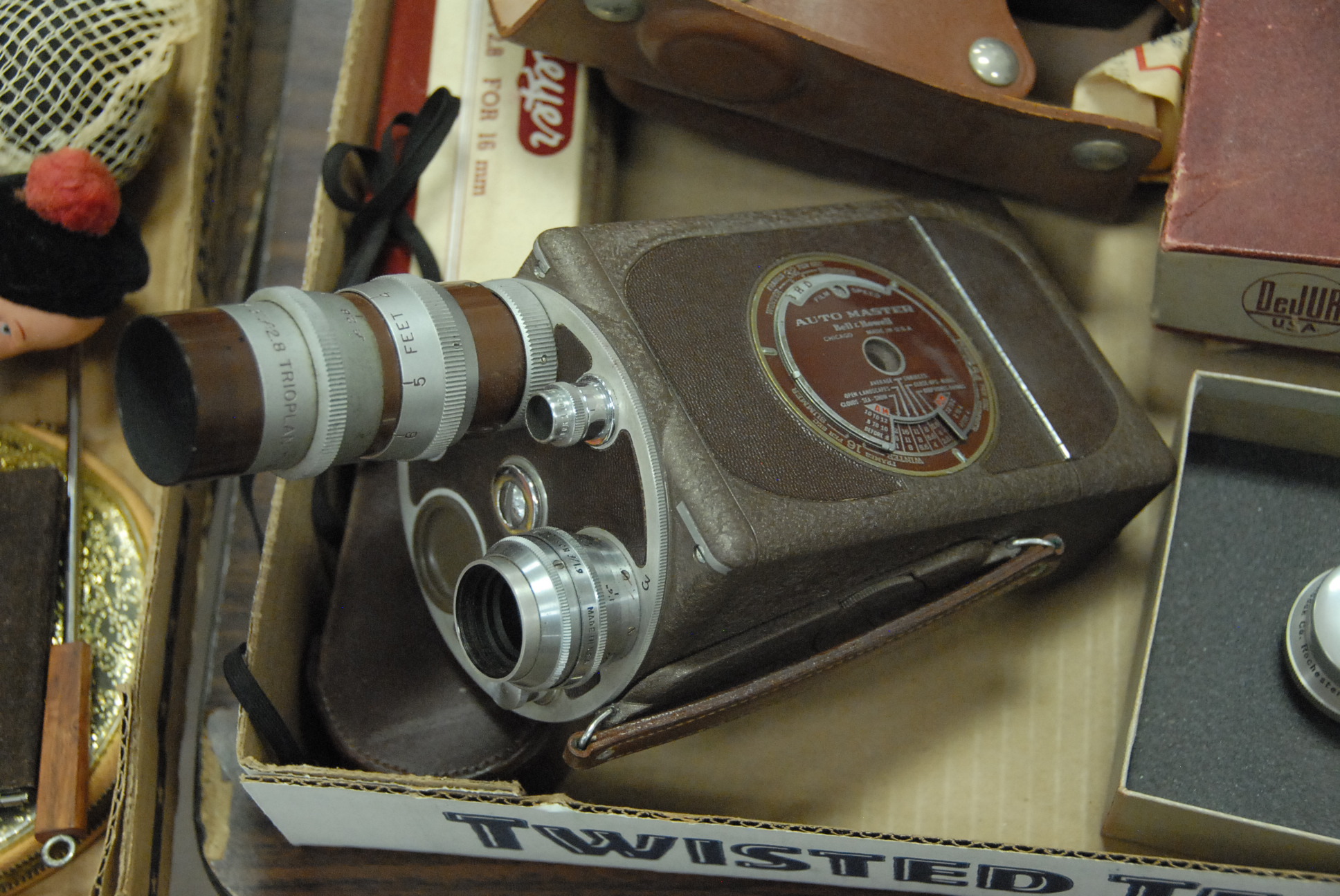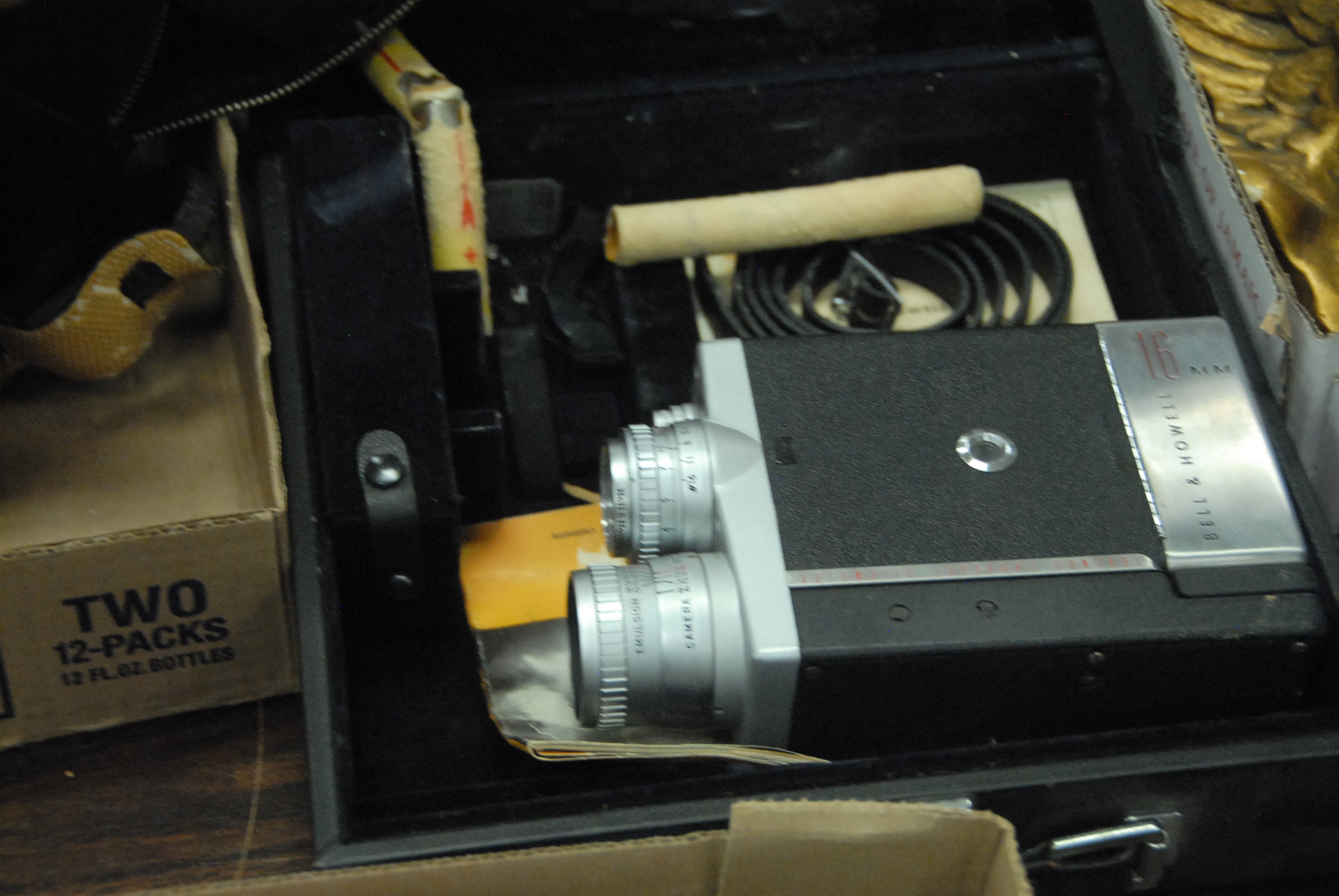 Two Bell & Howell cameras to include Bell & Howell 16mm Automatic camera with lenses and auto master, along with Zeika Kalimar binocular.