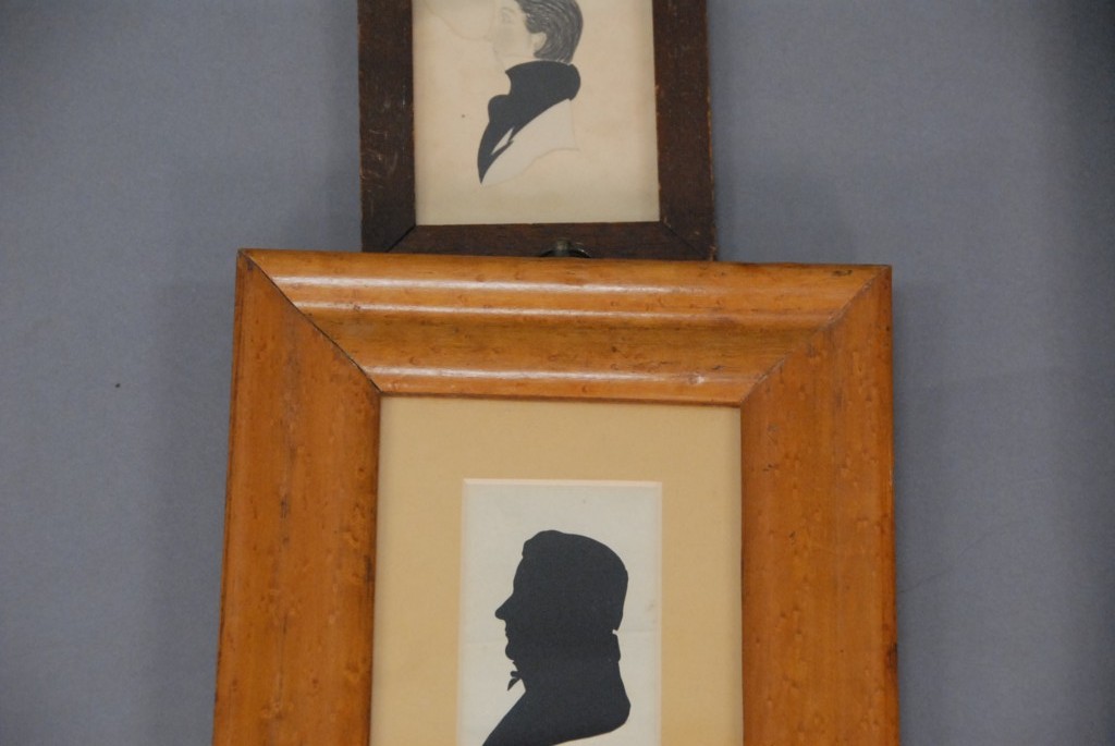 Lot 299: Two piece lot primitive silhouette of Henry Flagler and silhouette and pencil drawing signed on reverse Susan Church Farmington, CT.