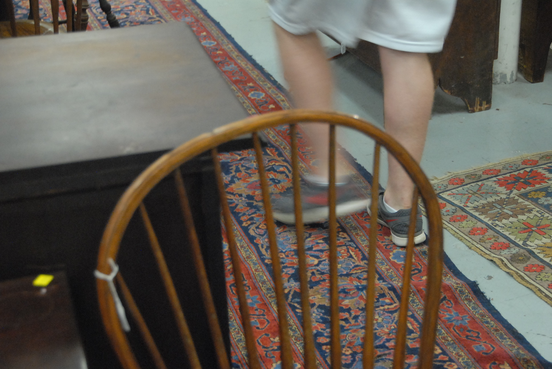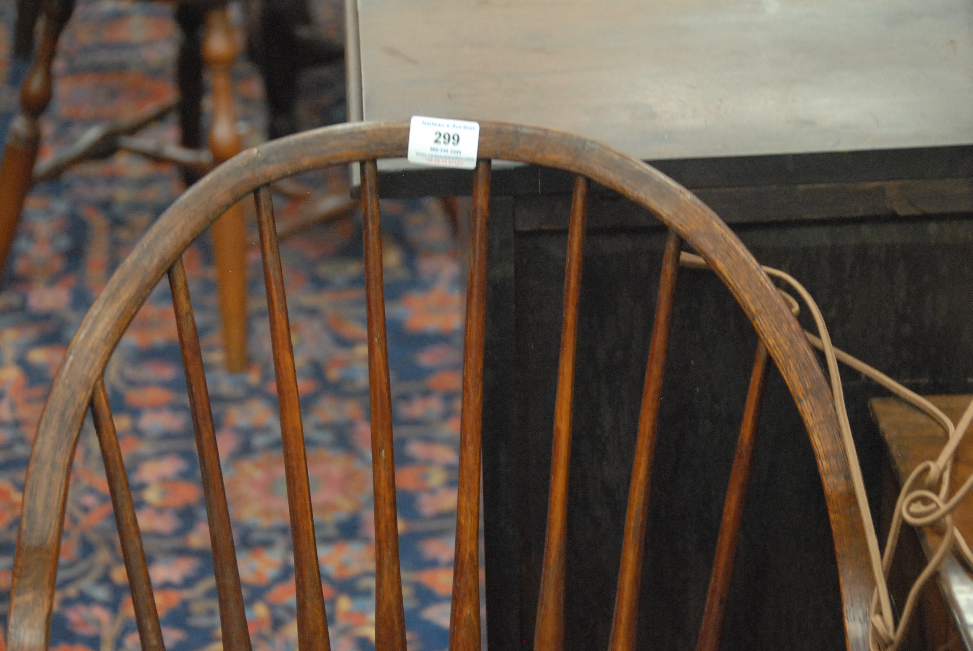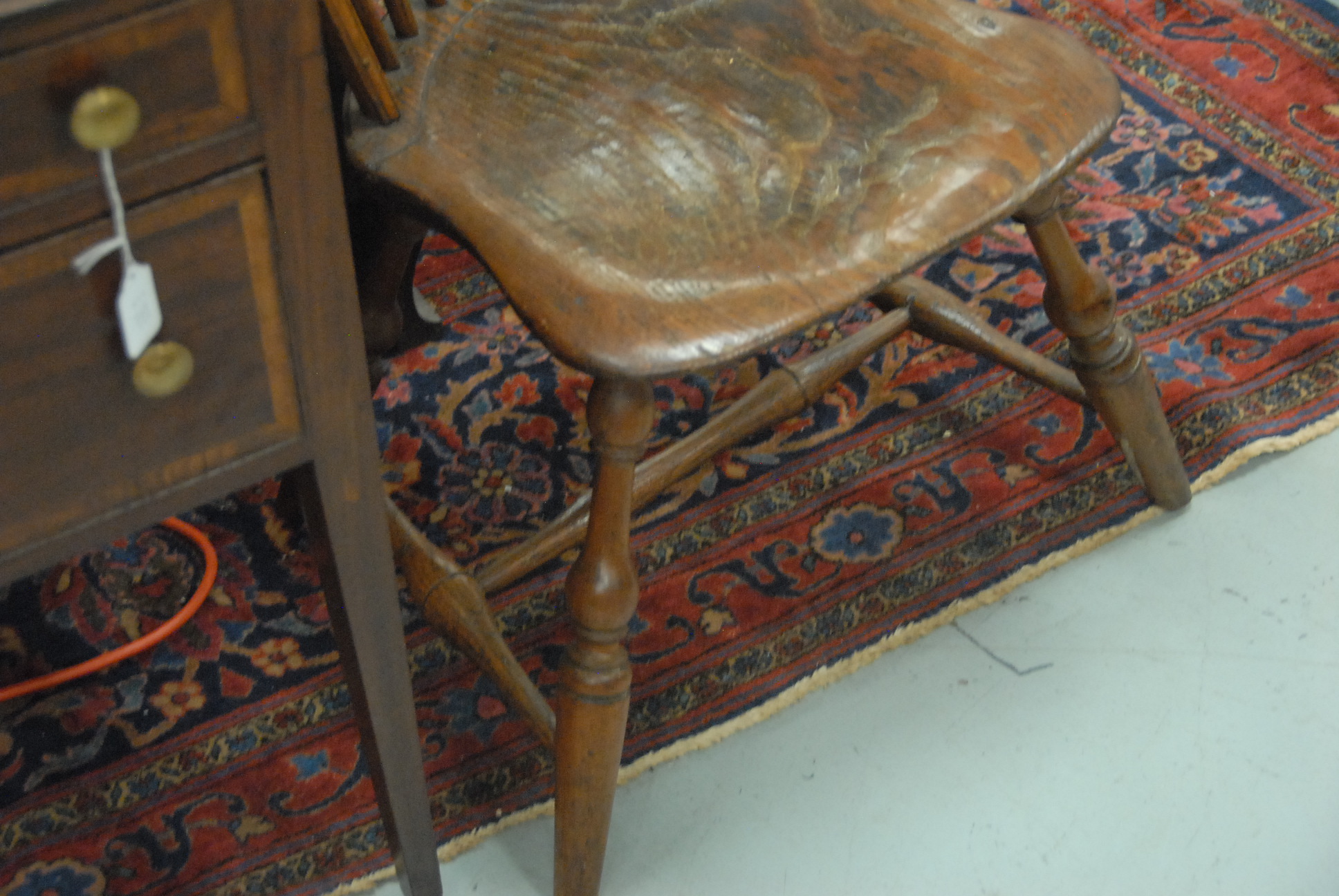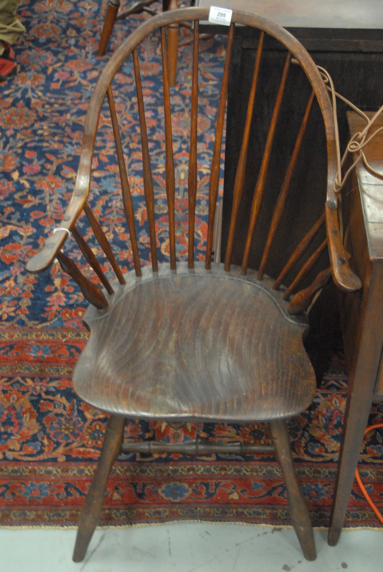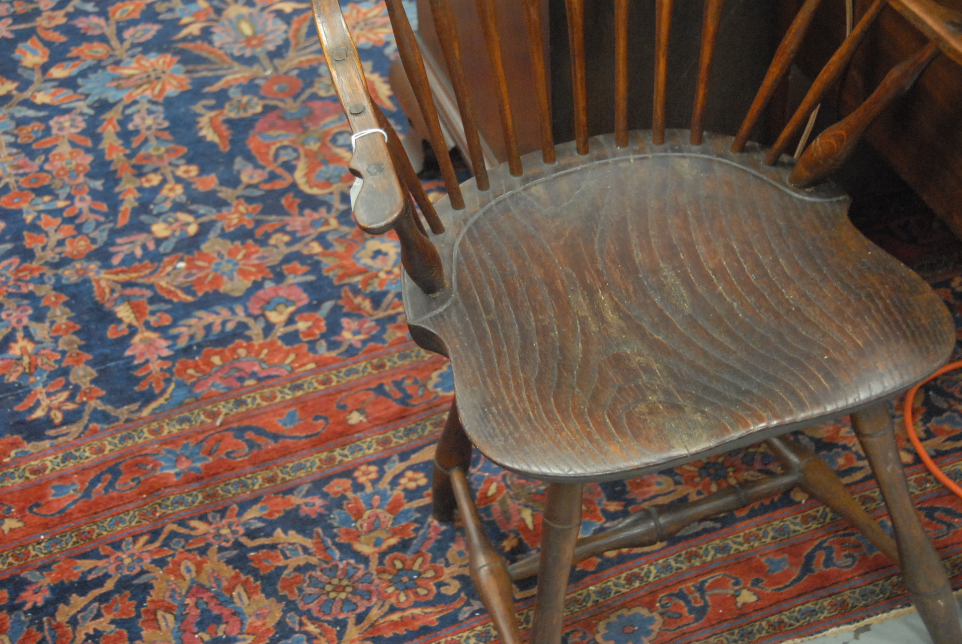 Lot 299: Two Windsor chairs, one bow back side chair signed E. B. Tracy and one continuous armchair. seat ht. 16 1/2 in. & 15 in. Provenance: Property from the Estate of Elizabeth and Edward Wallace of The Tracy House in Meriden, Connecticut.