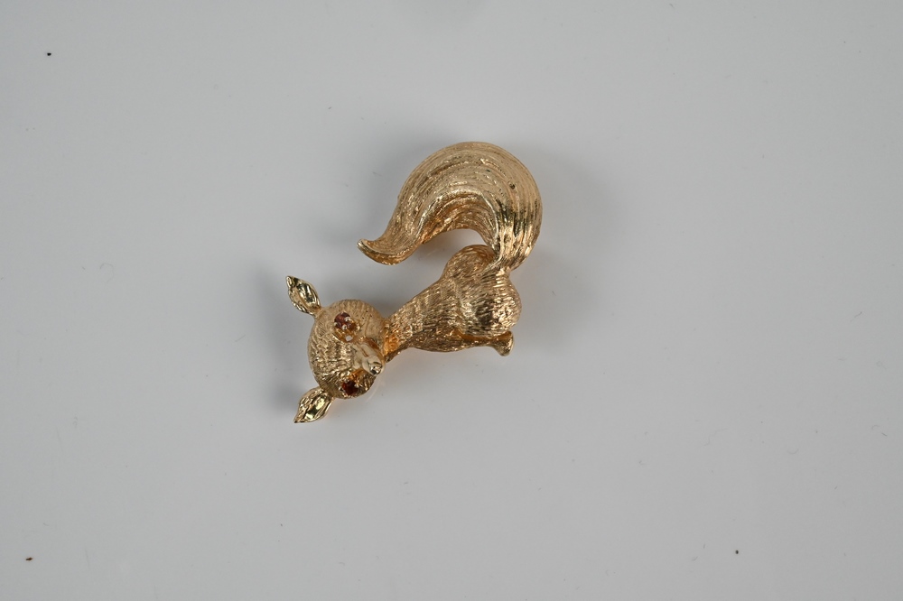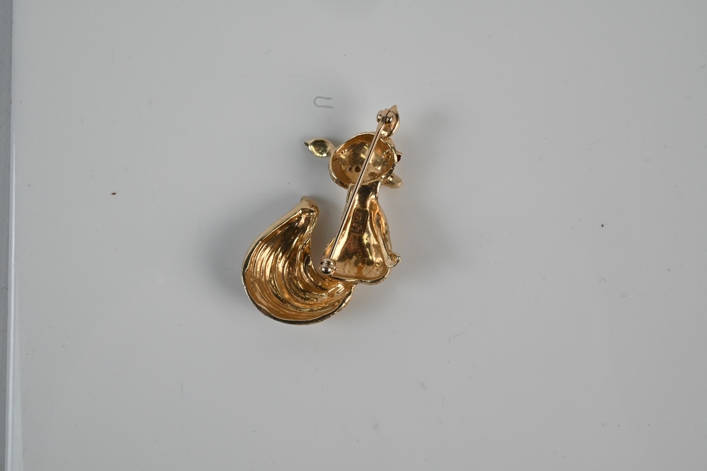 Lot 3: 14 Karat Gold Fox Brooch, having red eyes, signed LJ, height 1 7/8 inches, 13.1 grams.