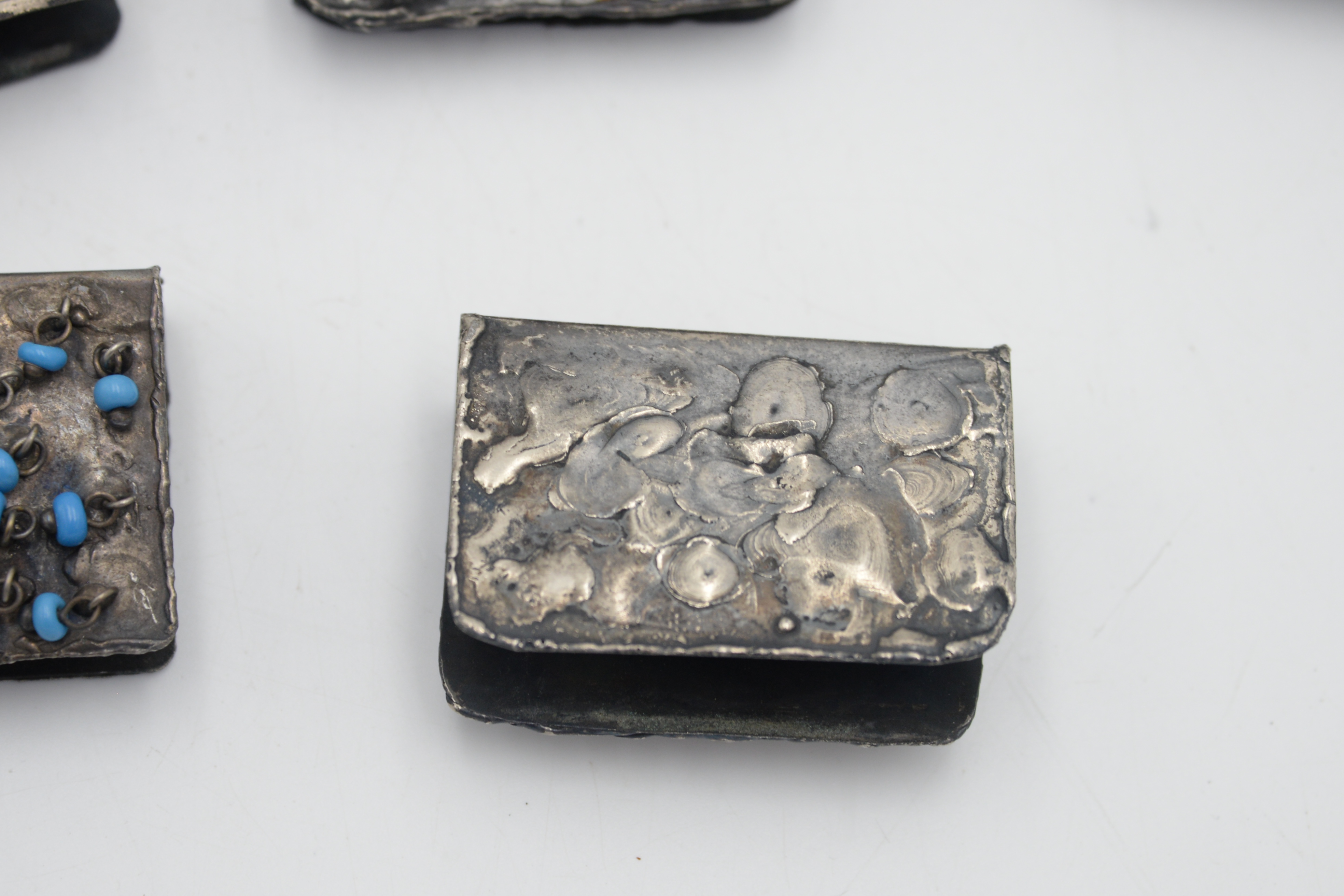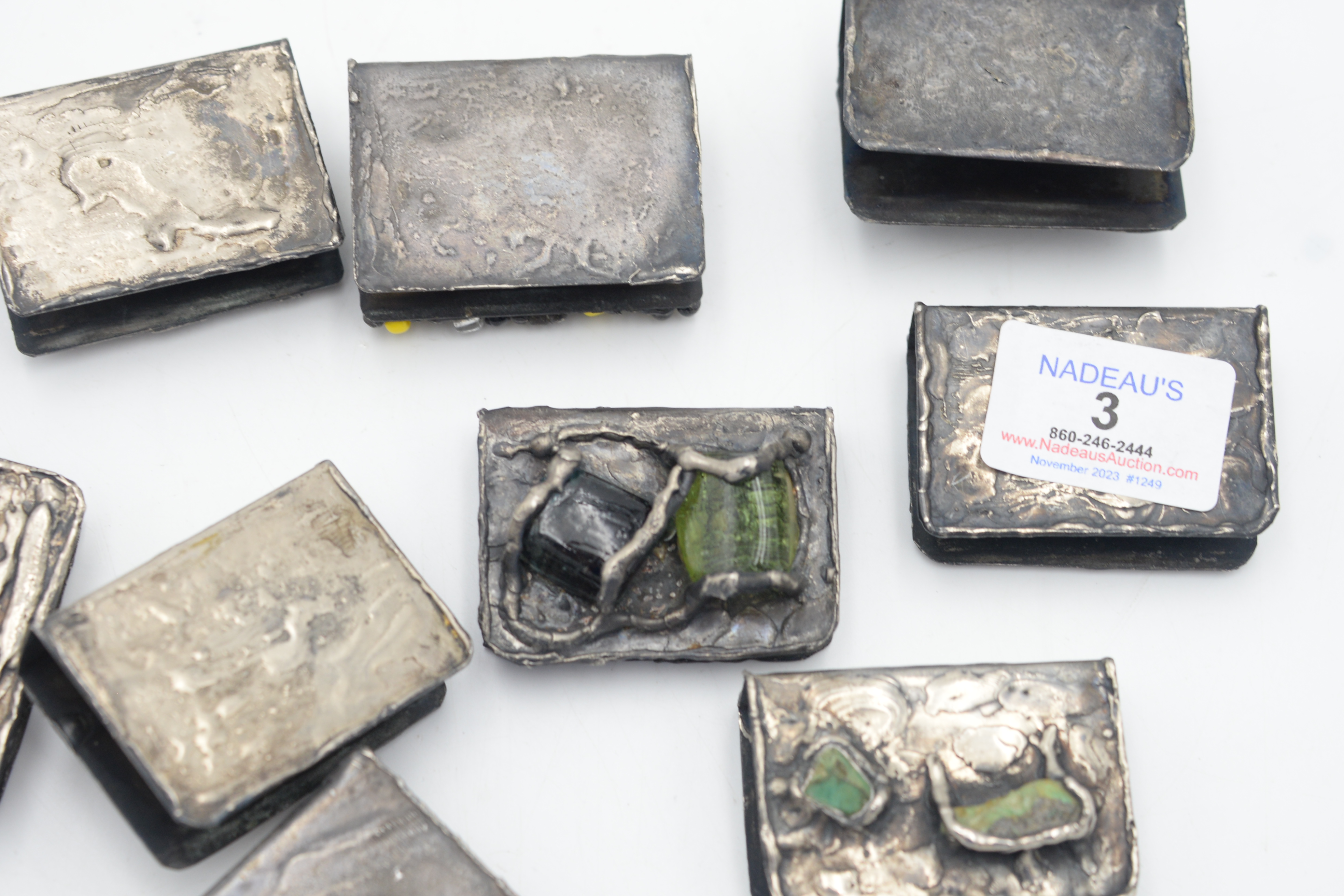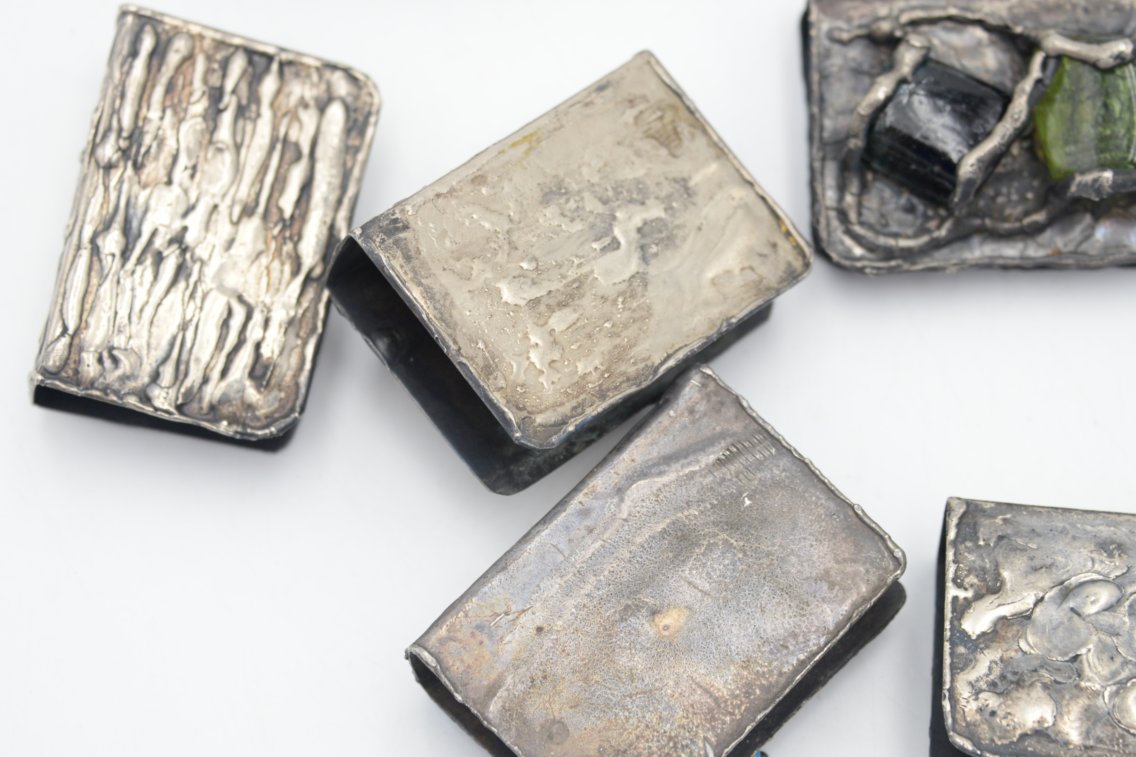 Nine Silver Matchbox Holders, probably Israeli, some mounted with stones, 12 t.oz. total weight, 2 1/4 inches length, 1 1/2 inches height