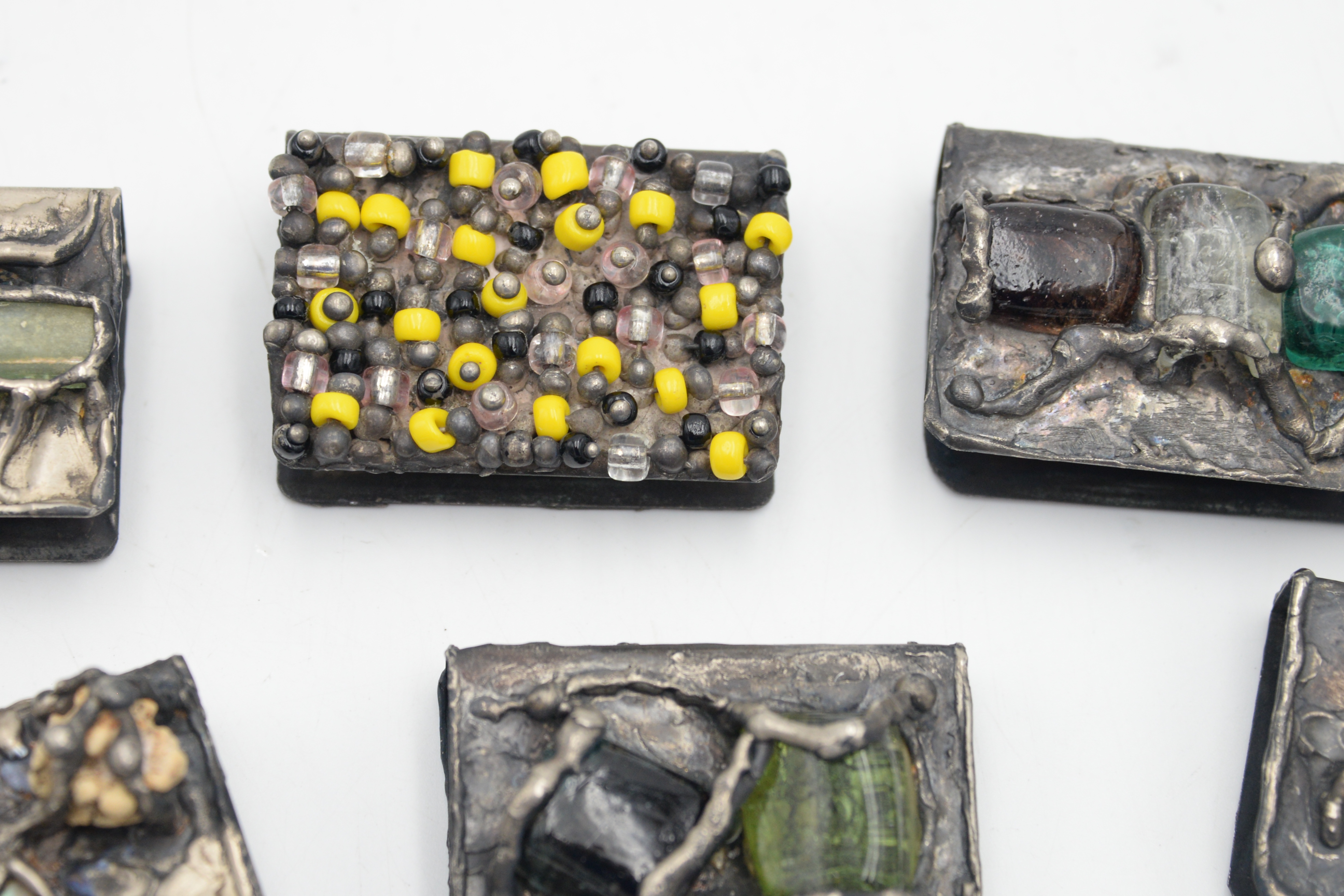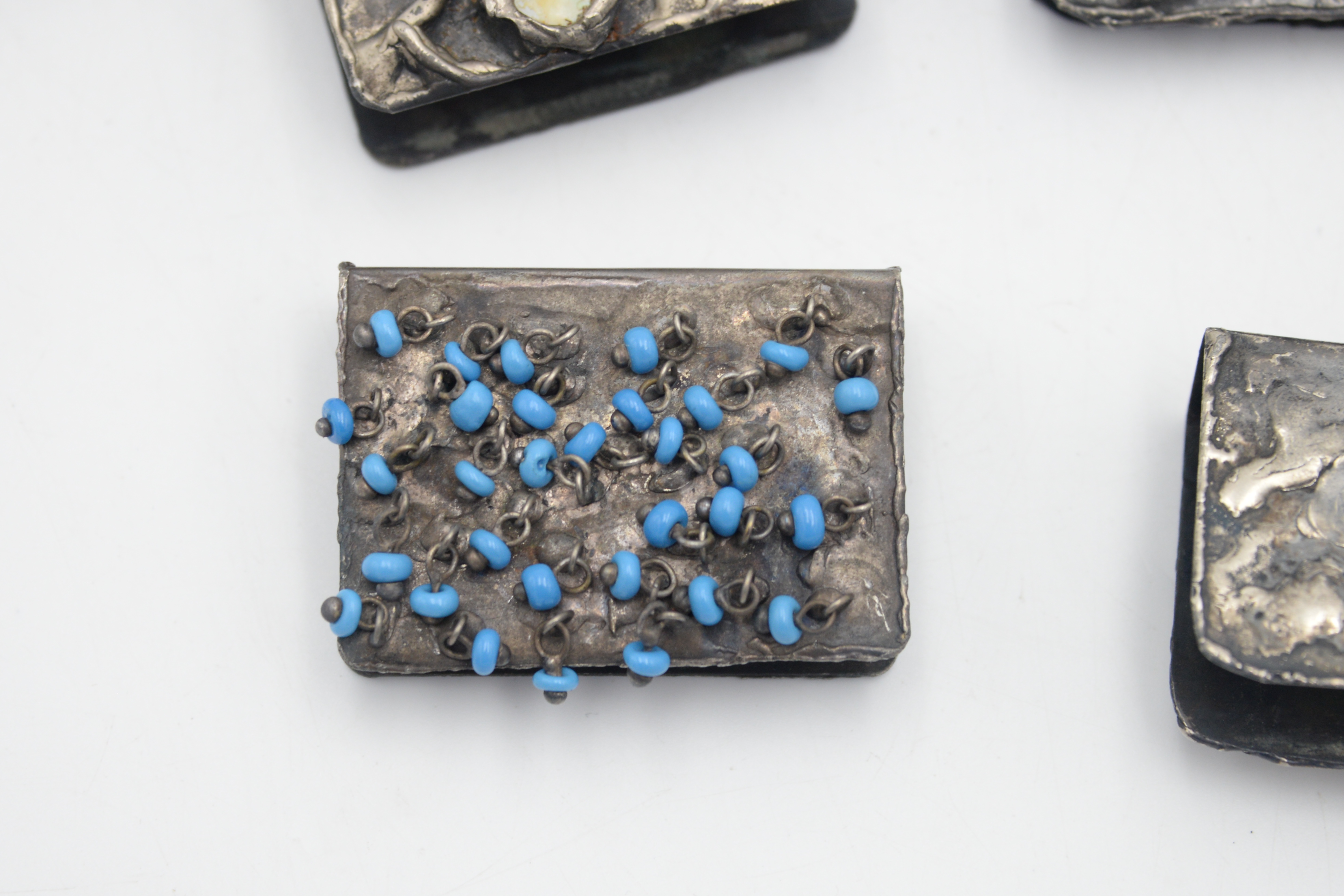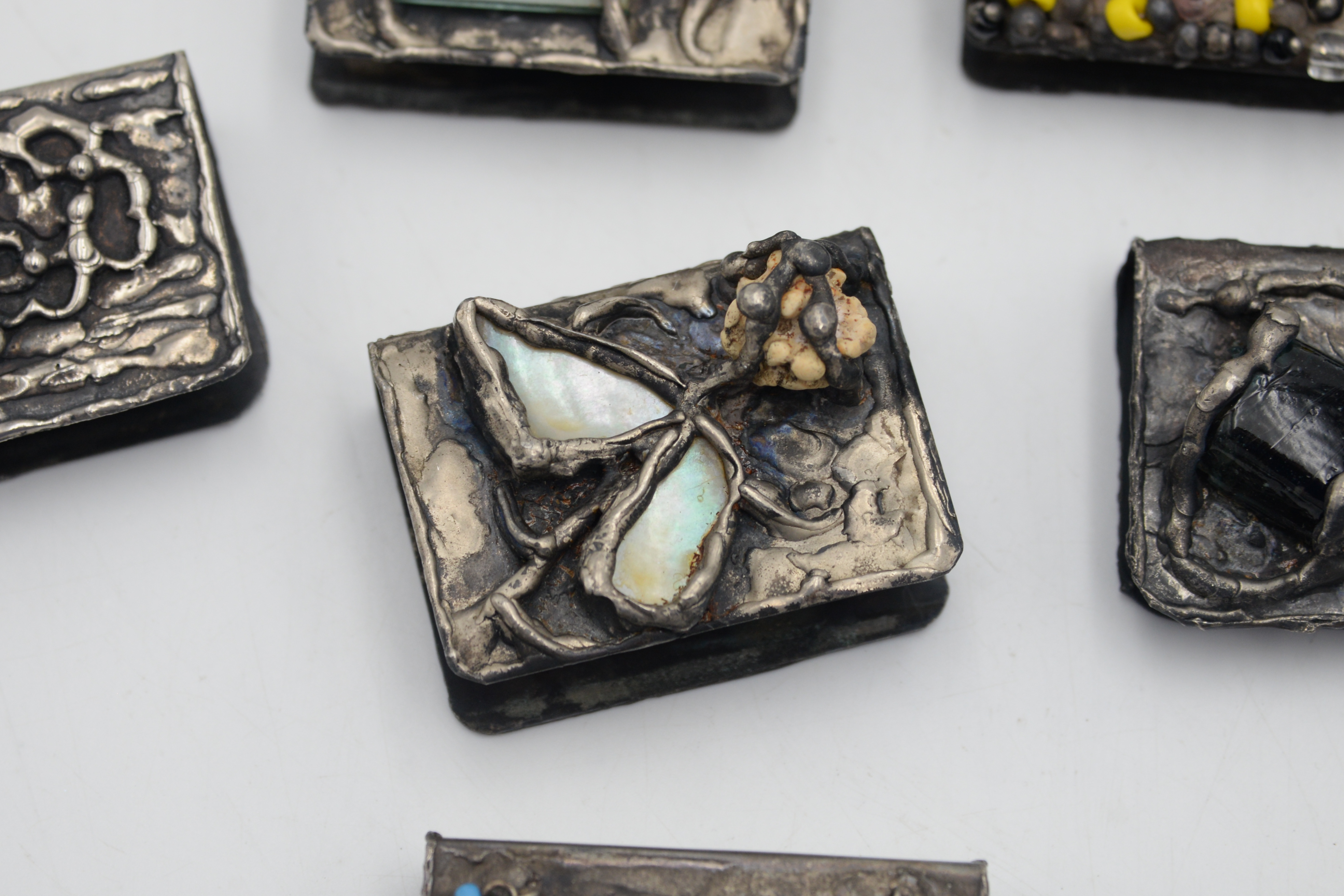 Nine Silver Matchbox Holders, probably Israeli, some mounted with stones, 12 t.oz. total weight, 2 1/4 inches length, 1 1/2 inches height