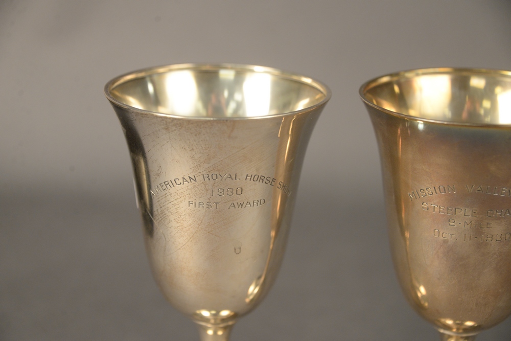 Set of Eight Sterling Silver Stems, monogrammed, 36.9 t.oz, height 6 1/2 inches.