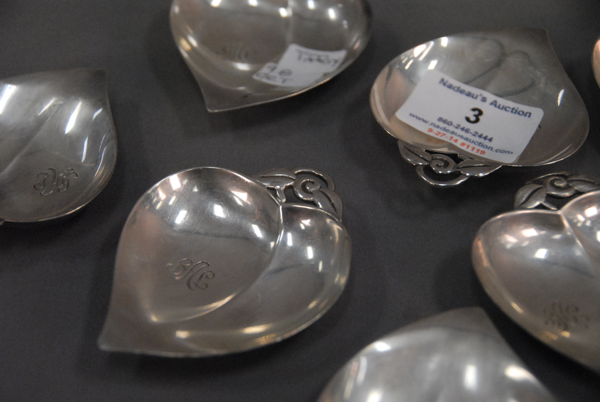 Set of eight Tiffany sterling leaf form dishes. 9.8 t oz.
