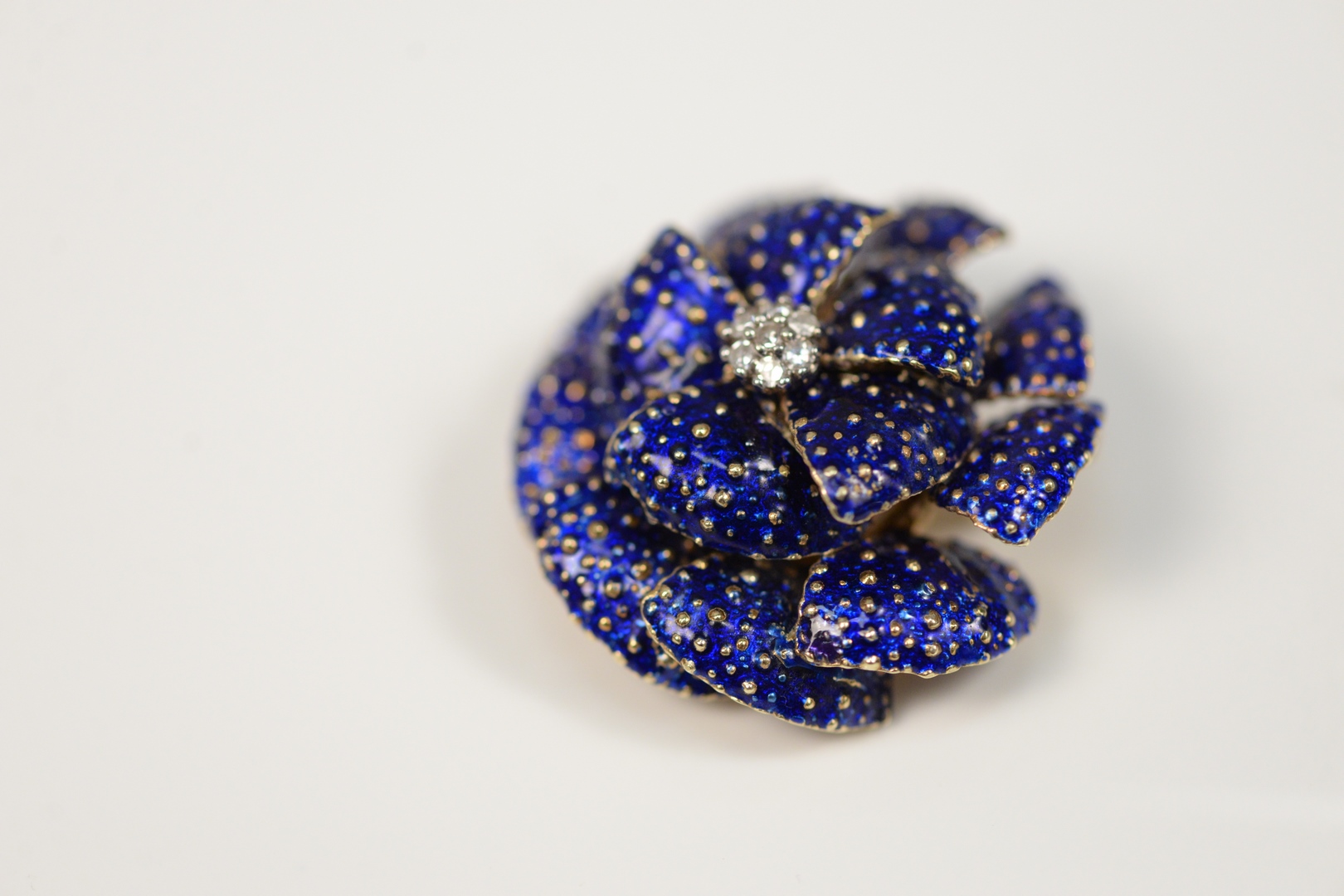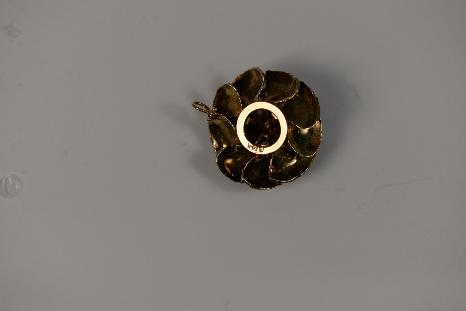 14 Karat Gold and Enameled Pendant set with seven small diamonds, enamel chipped 28.3 grams