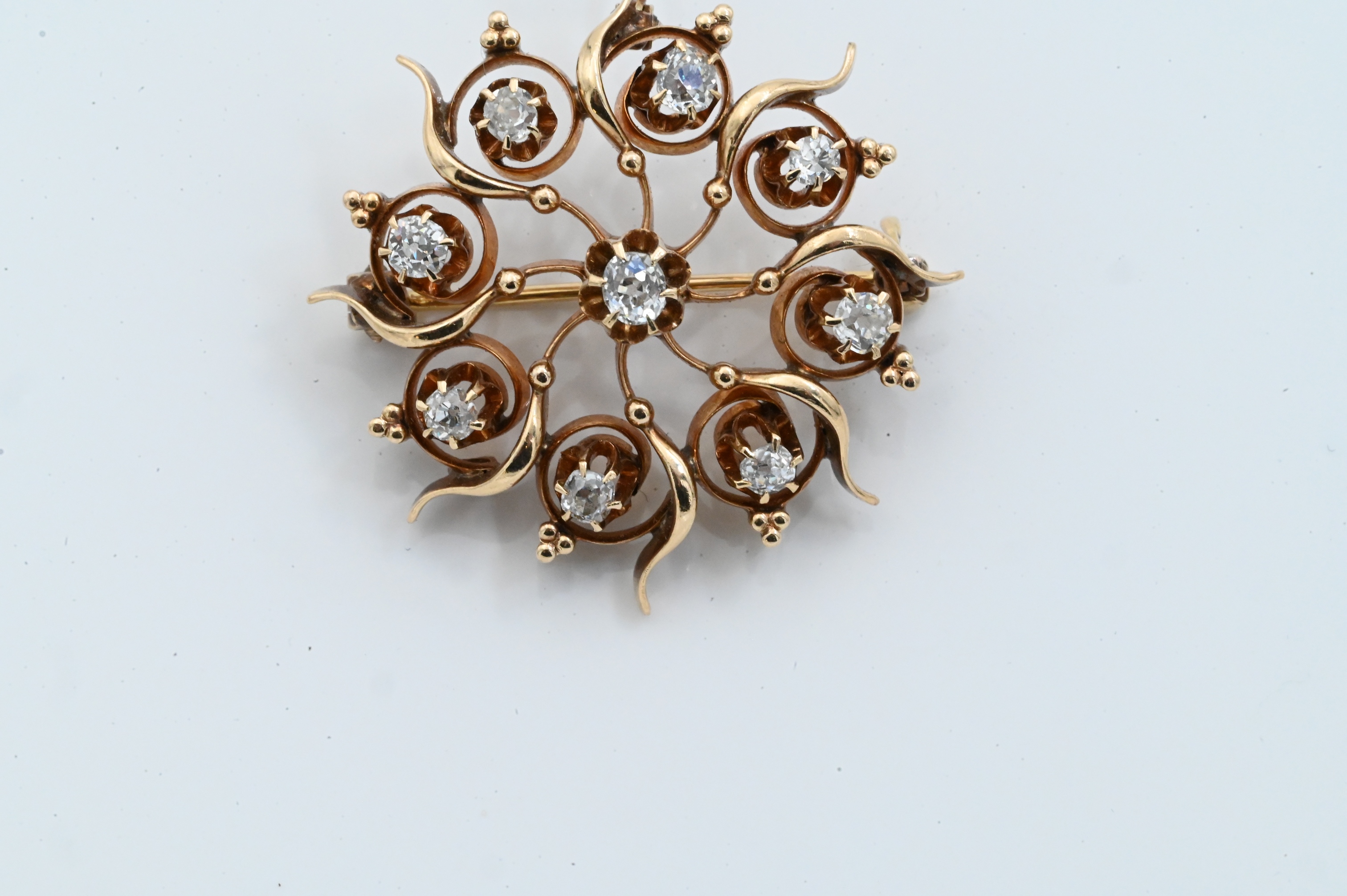 having 9 diamonds (largest approx. 3.3mm) set on a pinwheel