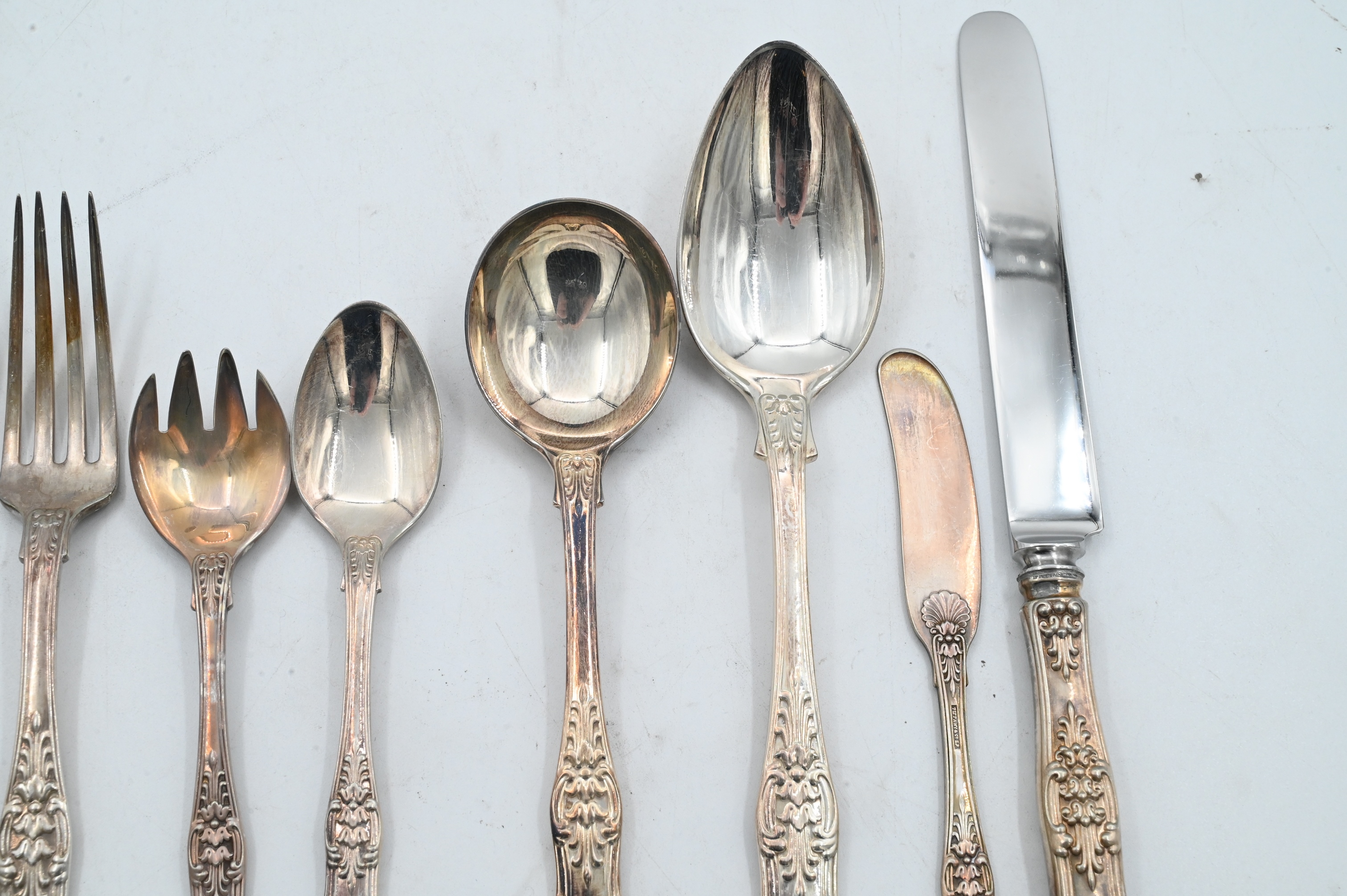 96 Piece Tiffany and Company Silver Plate Flatware Set in English King Pattern