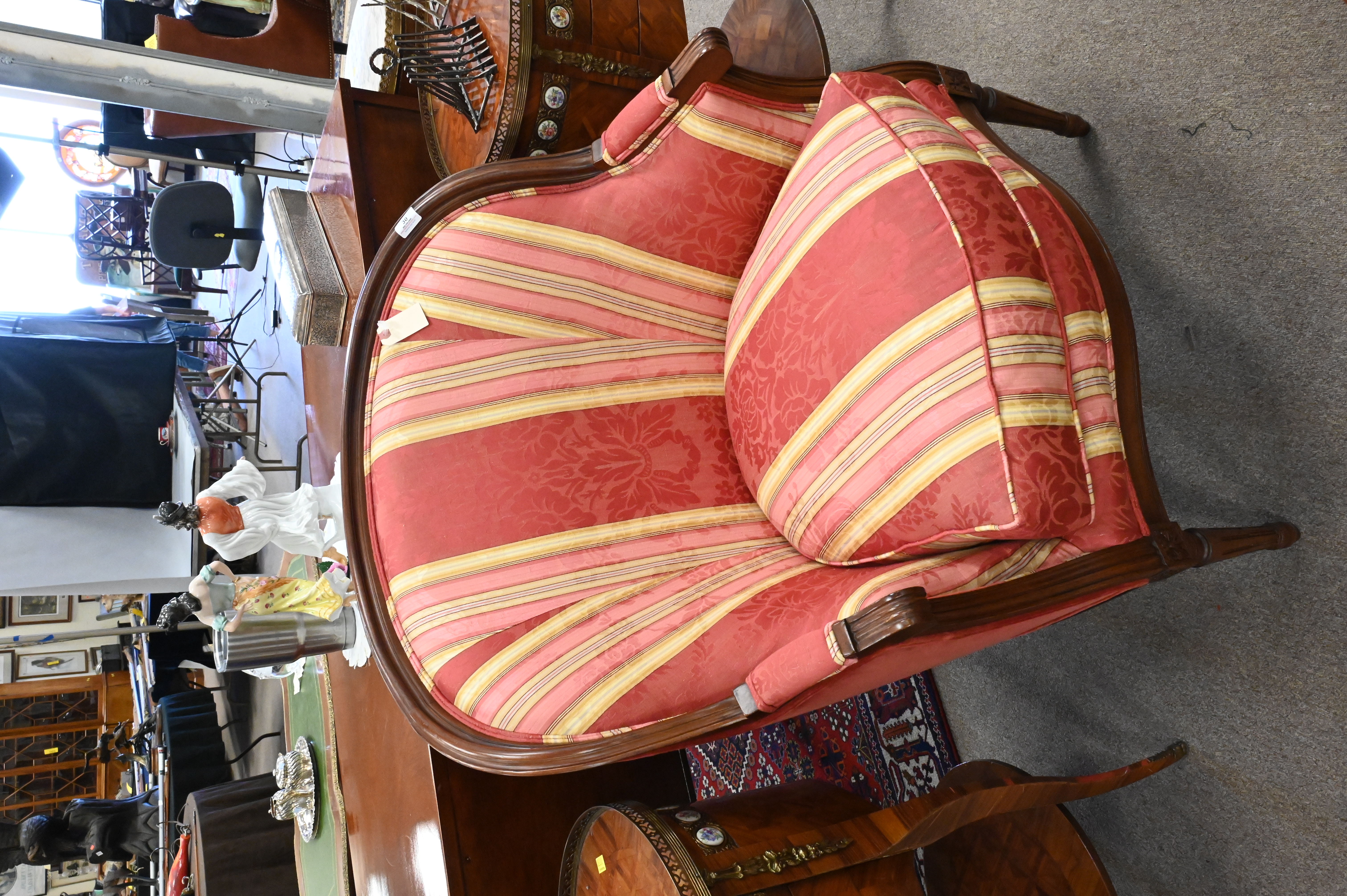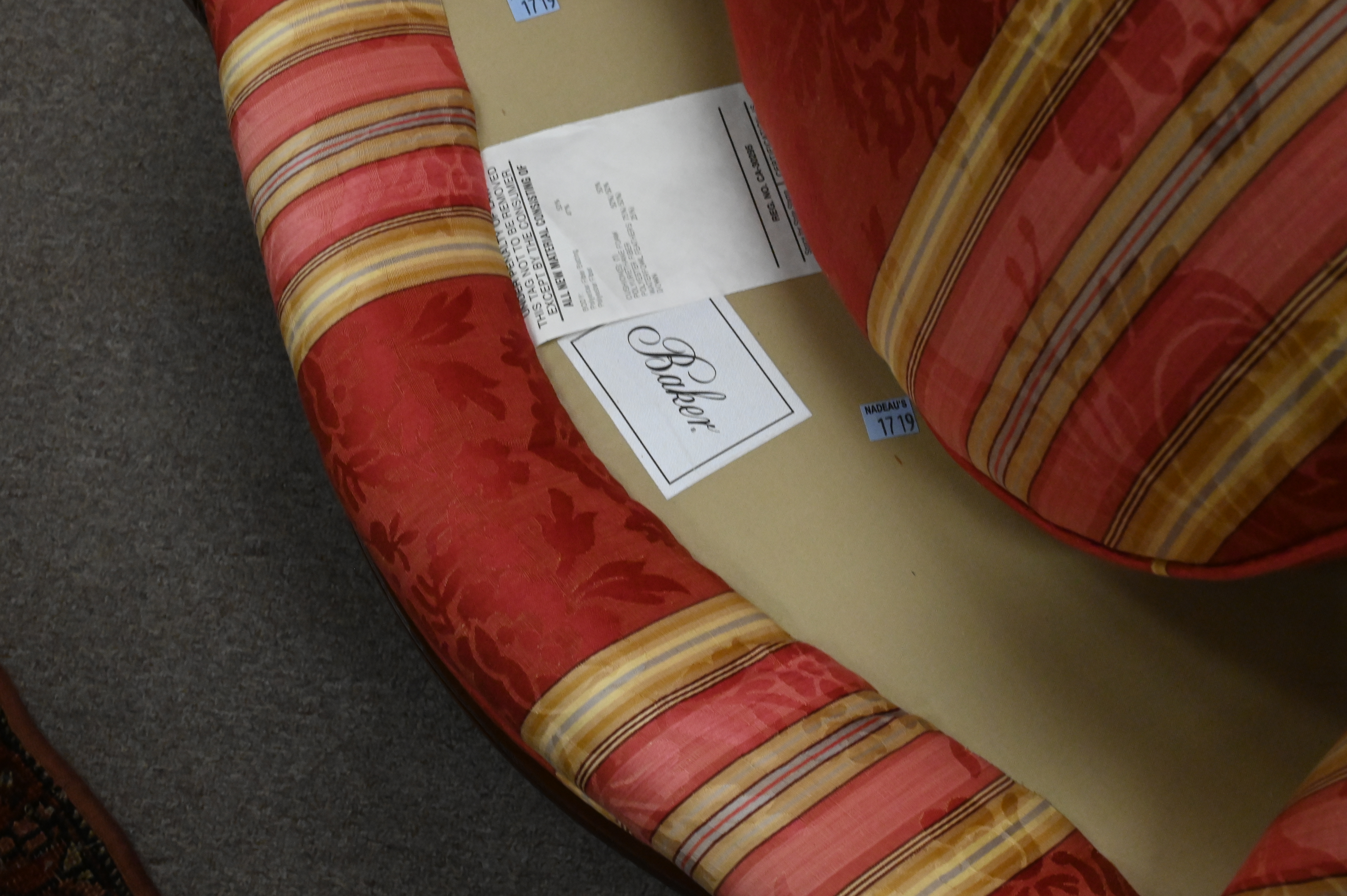 Baker Louis XV Style Upholstered Arm Chair, height 38 inches, width 29 1/2 inches.