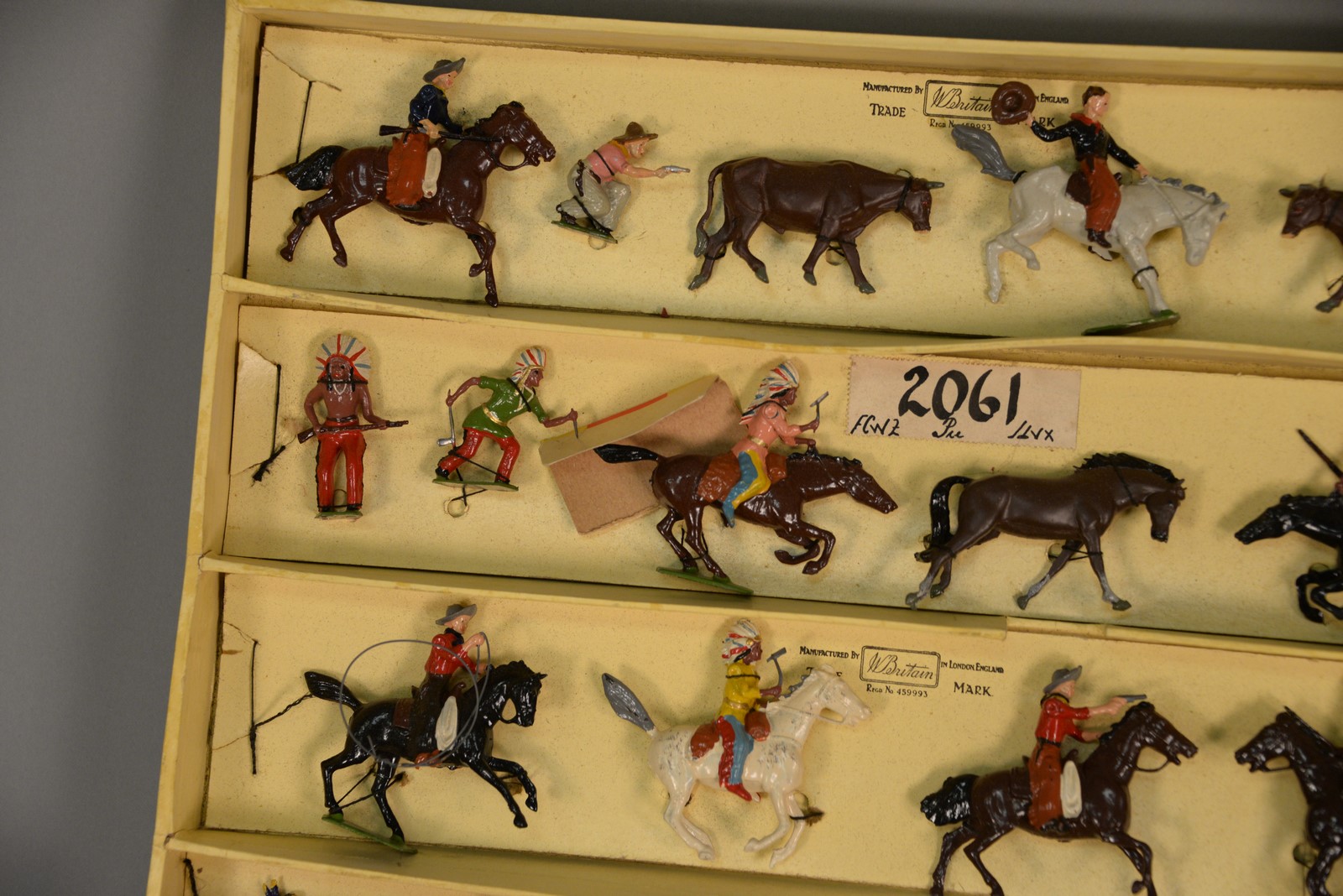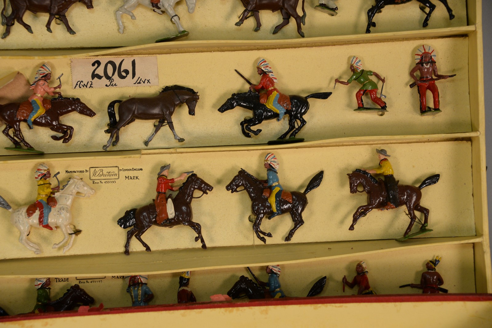 Britains lead soldiers, cowboys and North American Indians never removed from original two layer box, No. 2061.