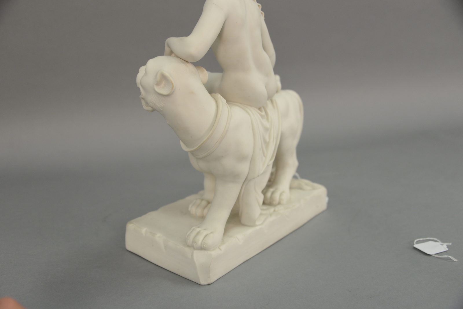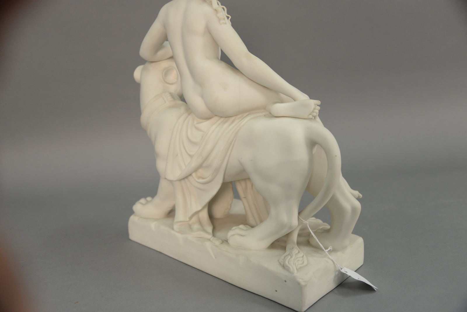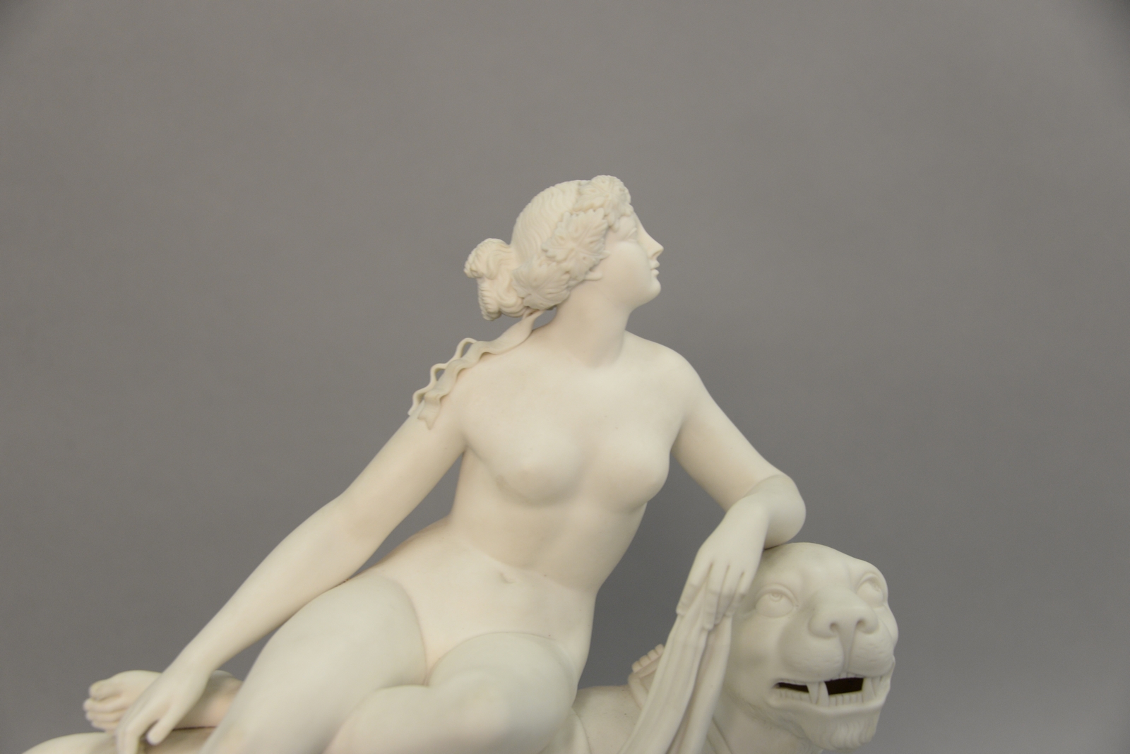 Lot 30: Minton Parian porcelain group, Ariadne and the Panther base professionally repaired. 14 1/2in.