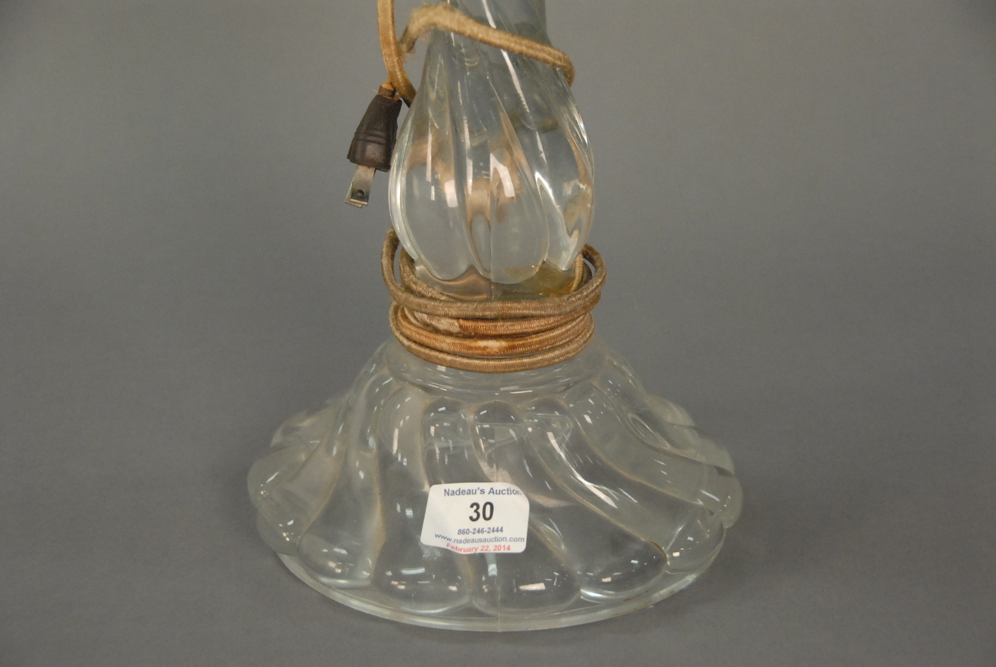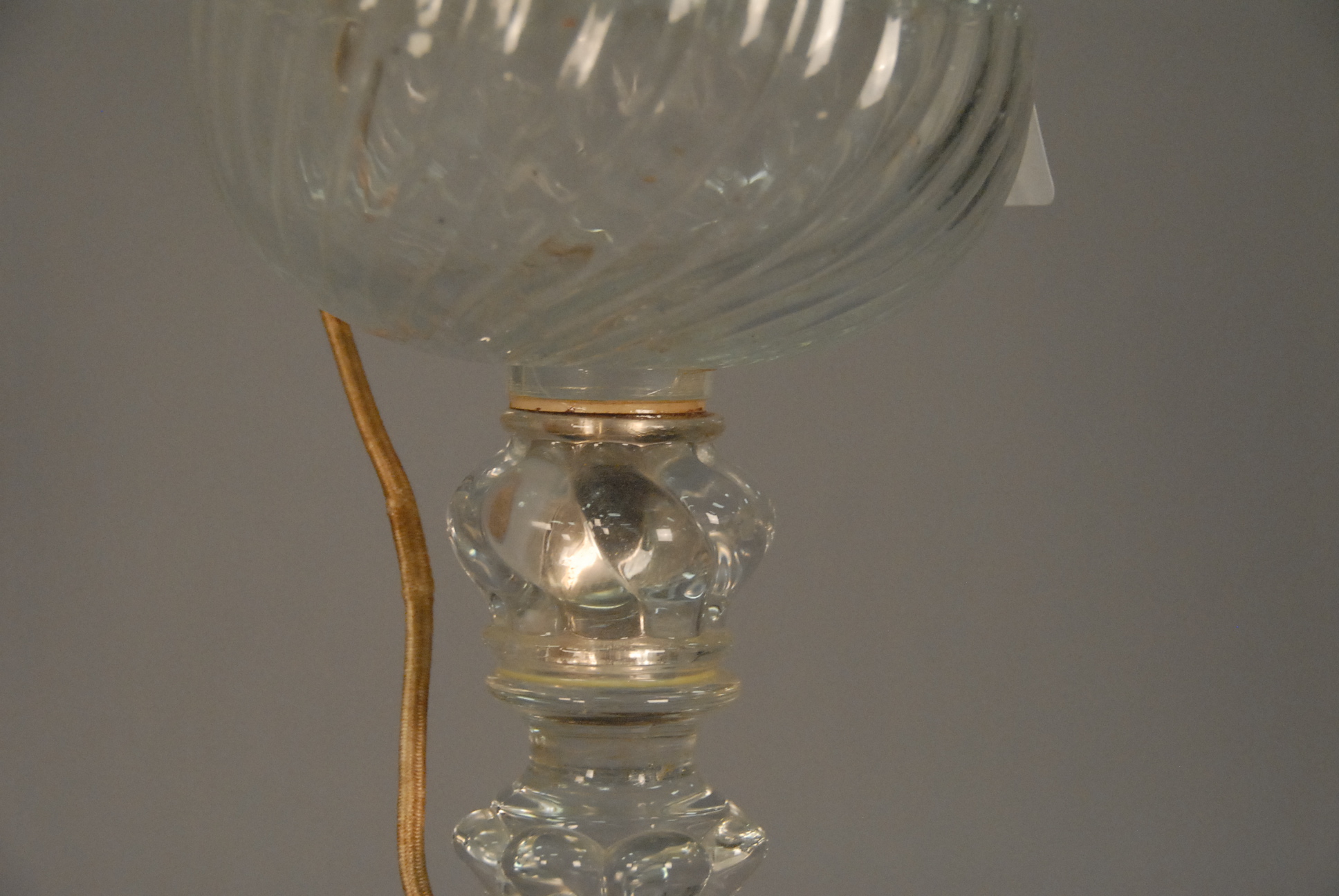 Molded glass oil lamp, possibly Baccarat, now electrified. ht. 18.