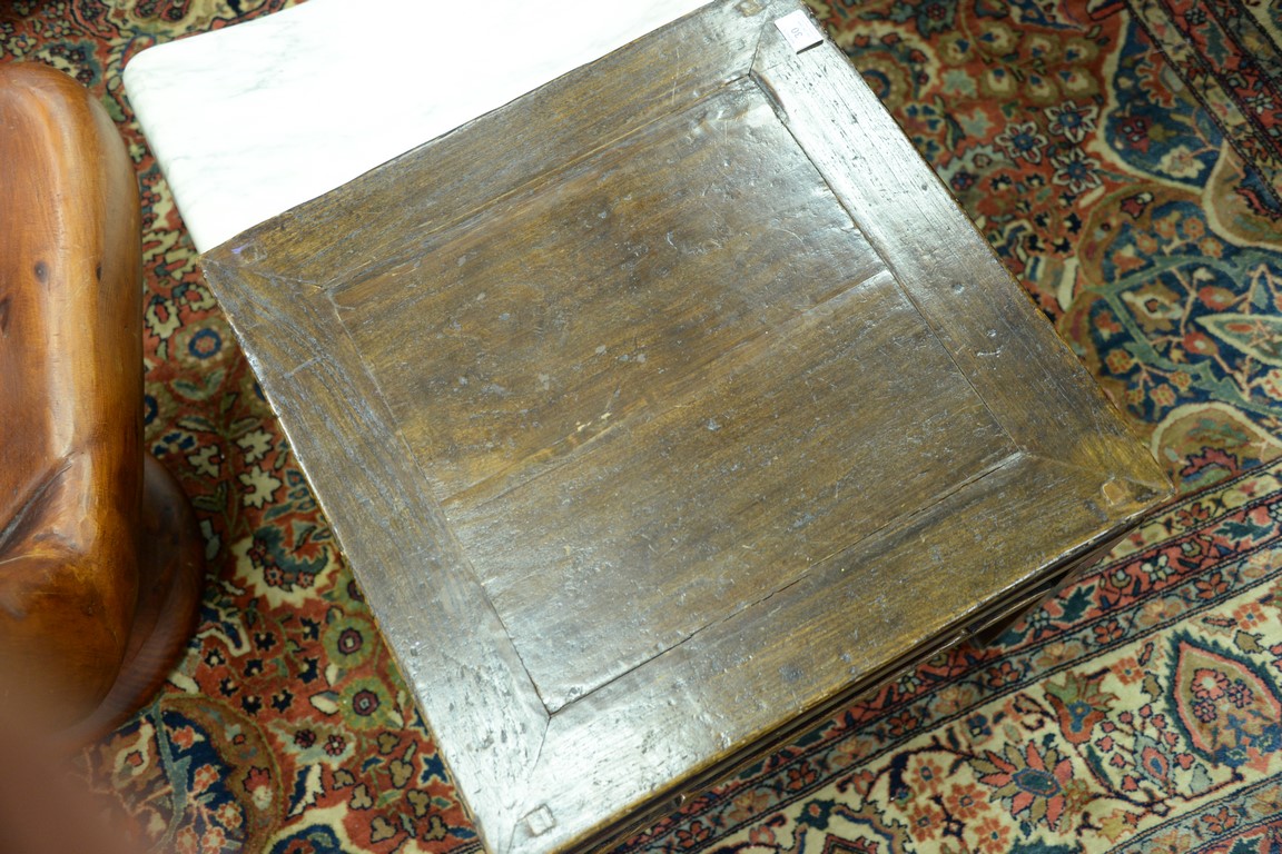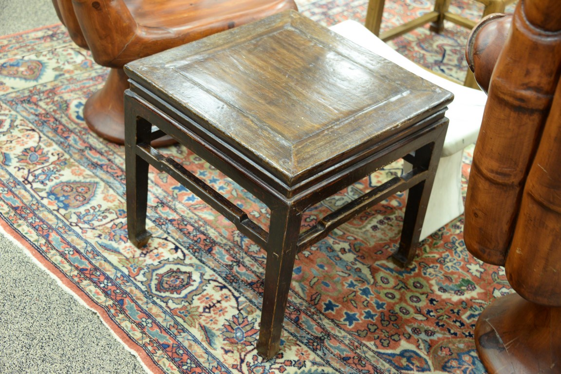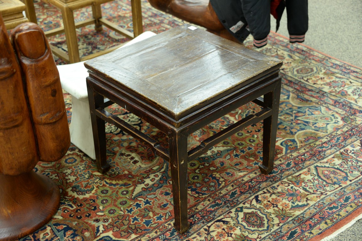 Lot 30: Pair of Chinese stands with squared tops on square legs, probably 18th century. height 20 1/2 inches, top: 20 1/4 x 20 1/2