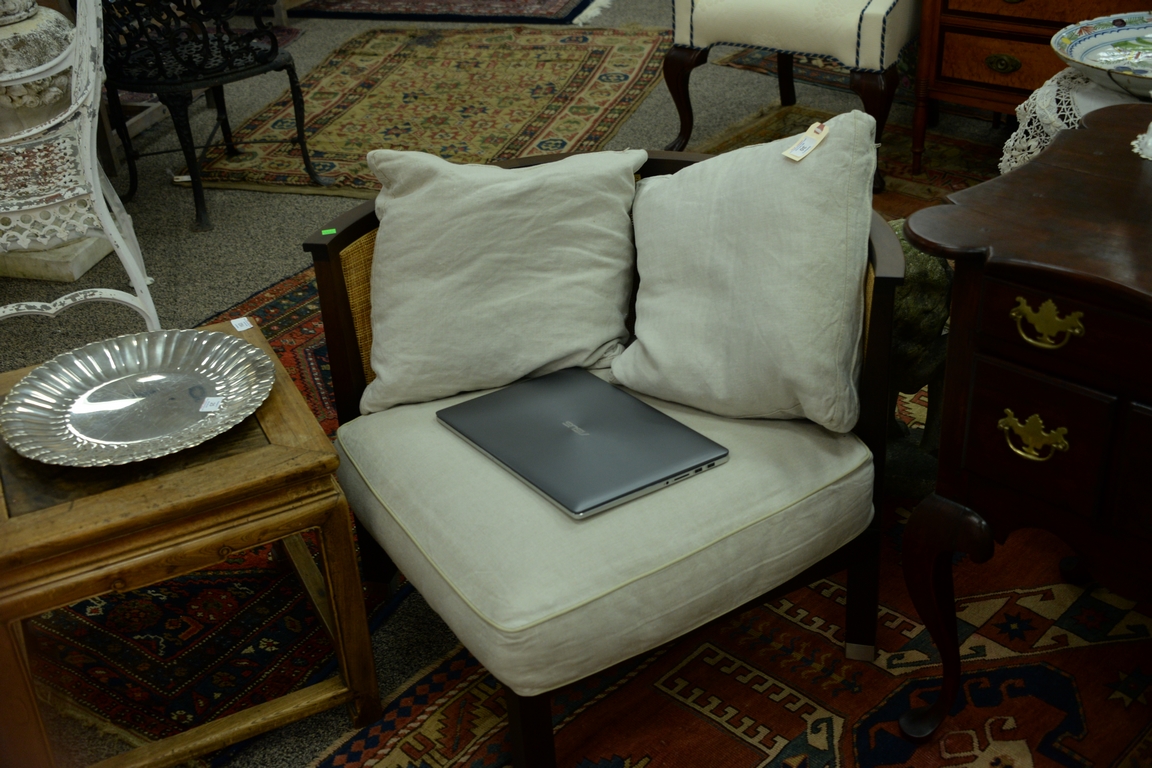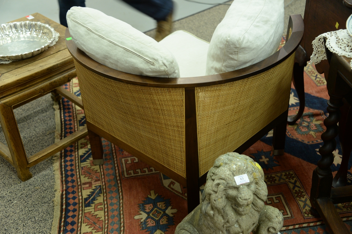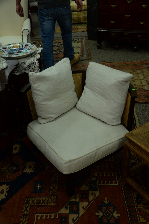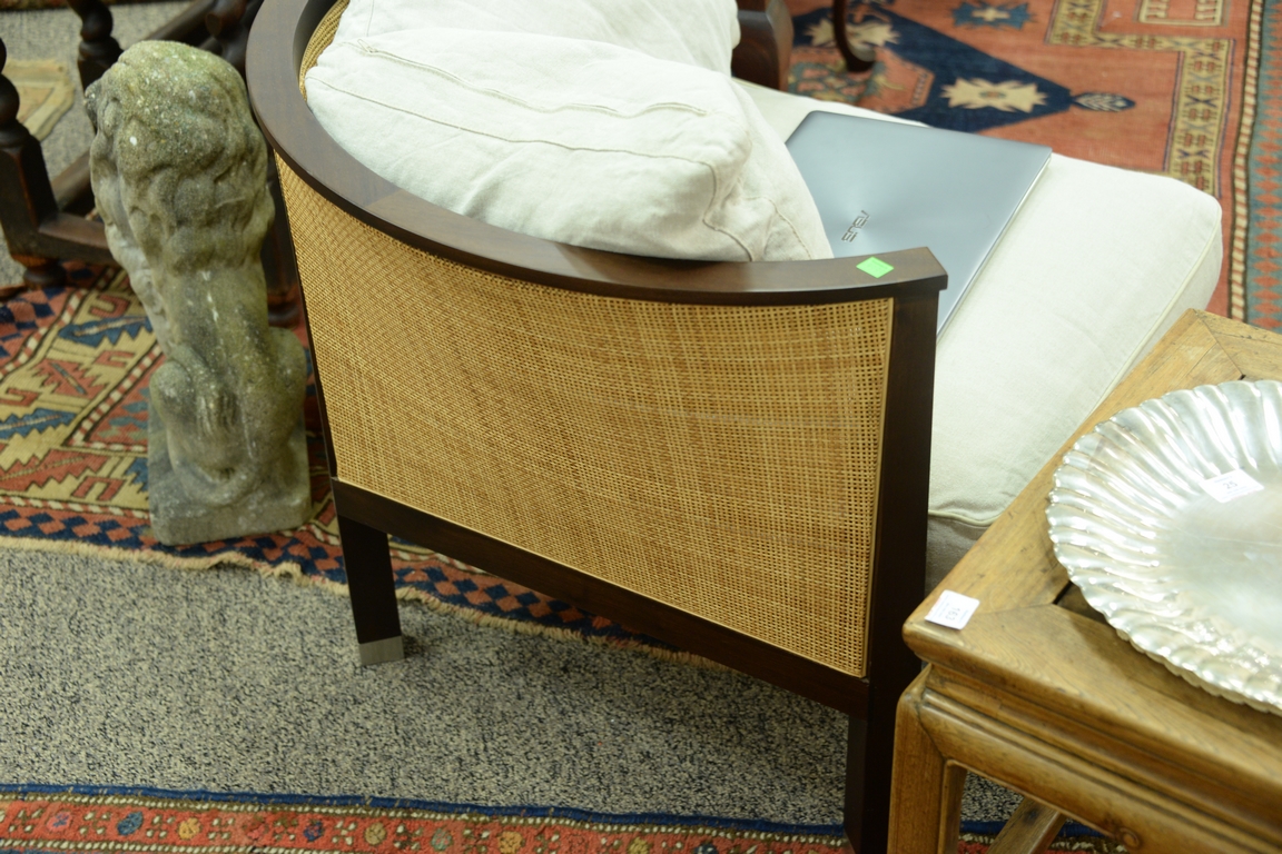 Lot 30: Pair of Flexform corner chairs with caned backs.