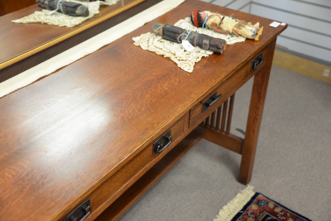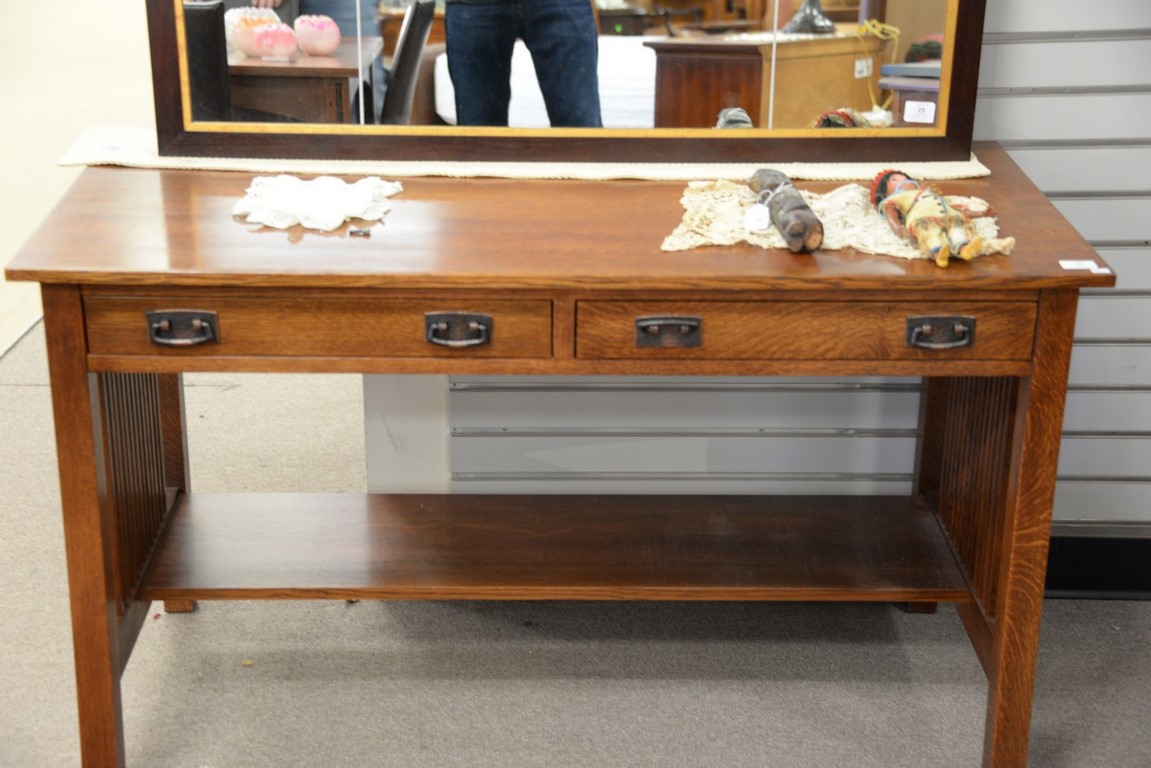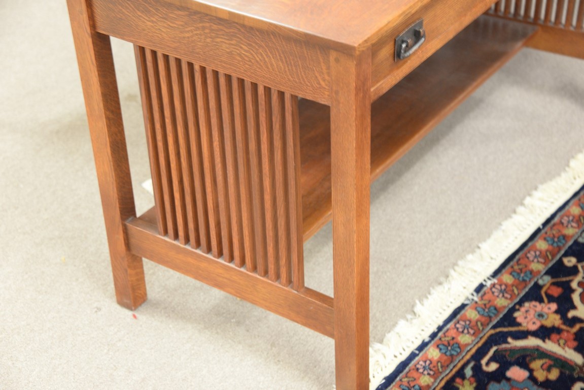 Lot 30: Stickley oak library writing/computer table with two drawers, one drops for keyboard. ht. 29 1/2 in. top: 24 x 50