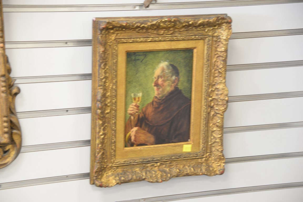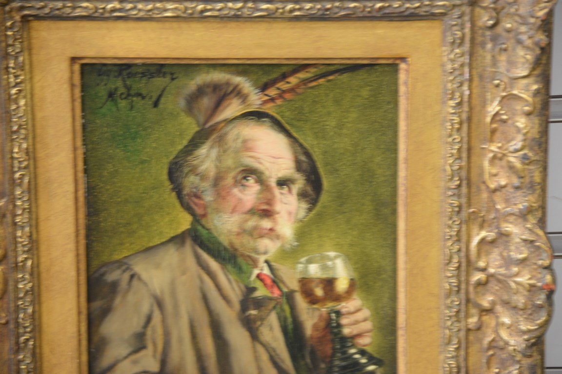Lot 30: Two oil on panels, each of a bust of older man with a drink signed top left G. Roessier M. 8 1/2 x 6 1/2