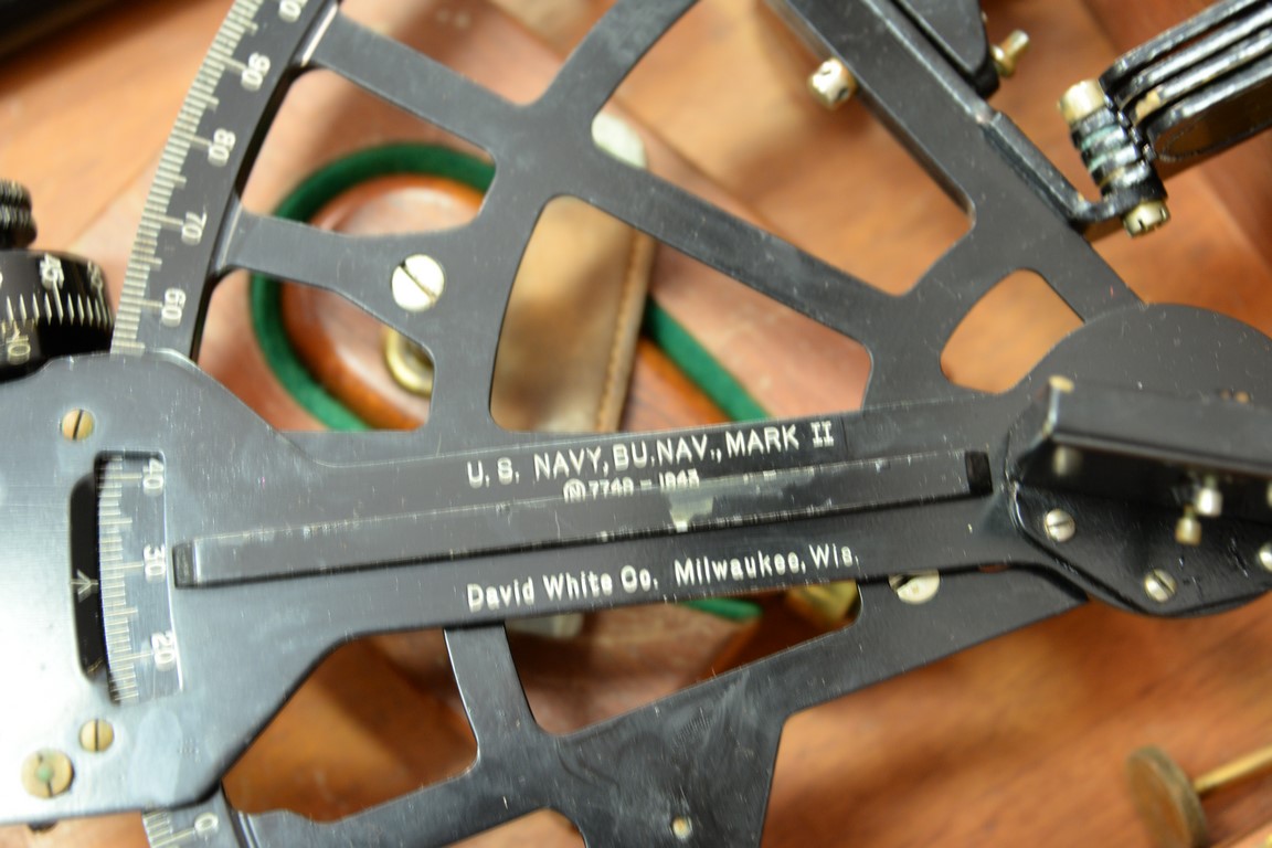 Two sextants including David White US Navy 1943 and Air Force sextant.