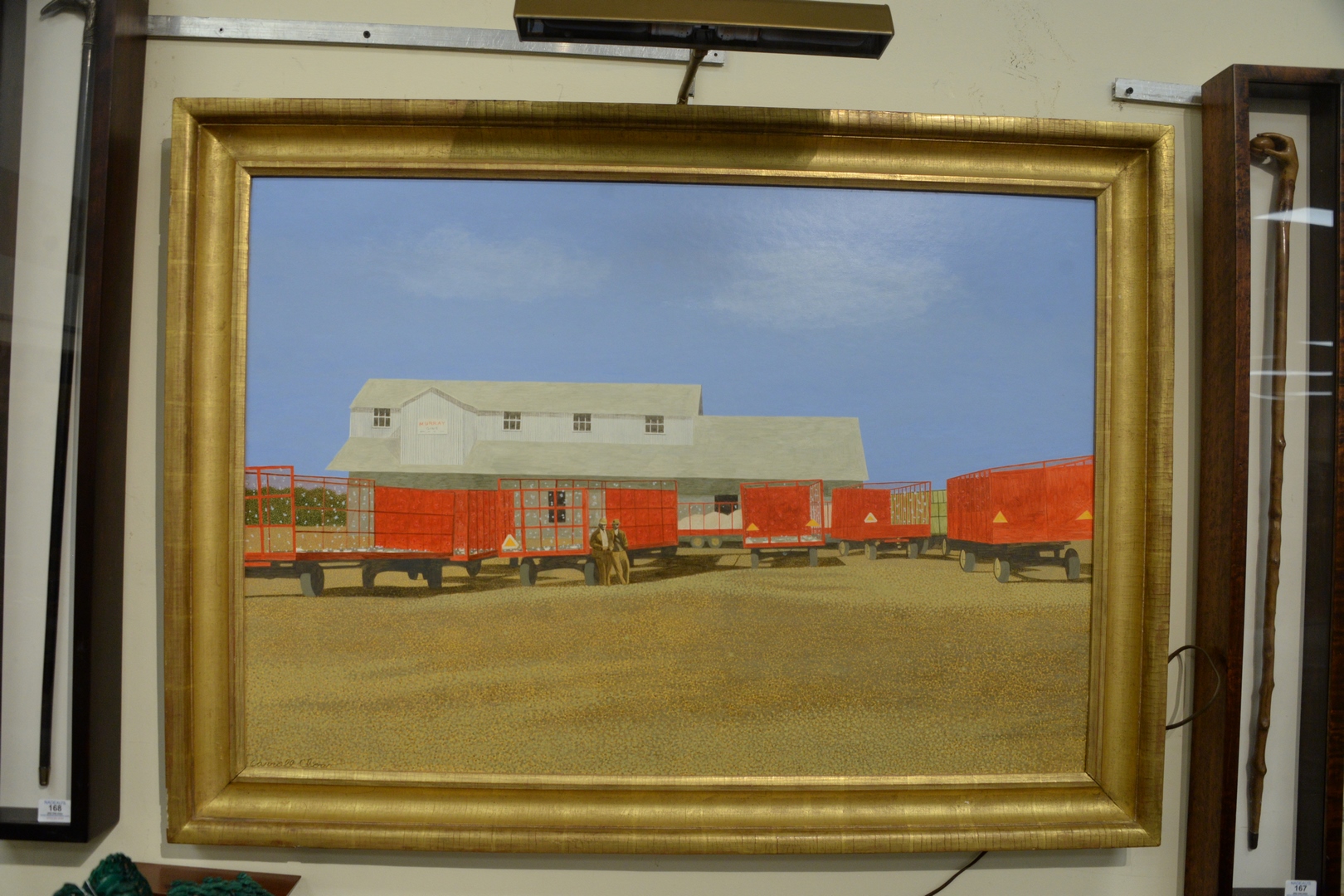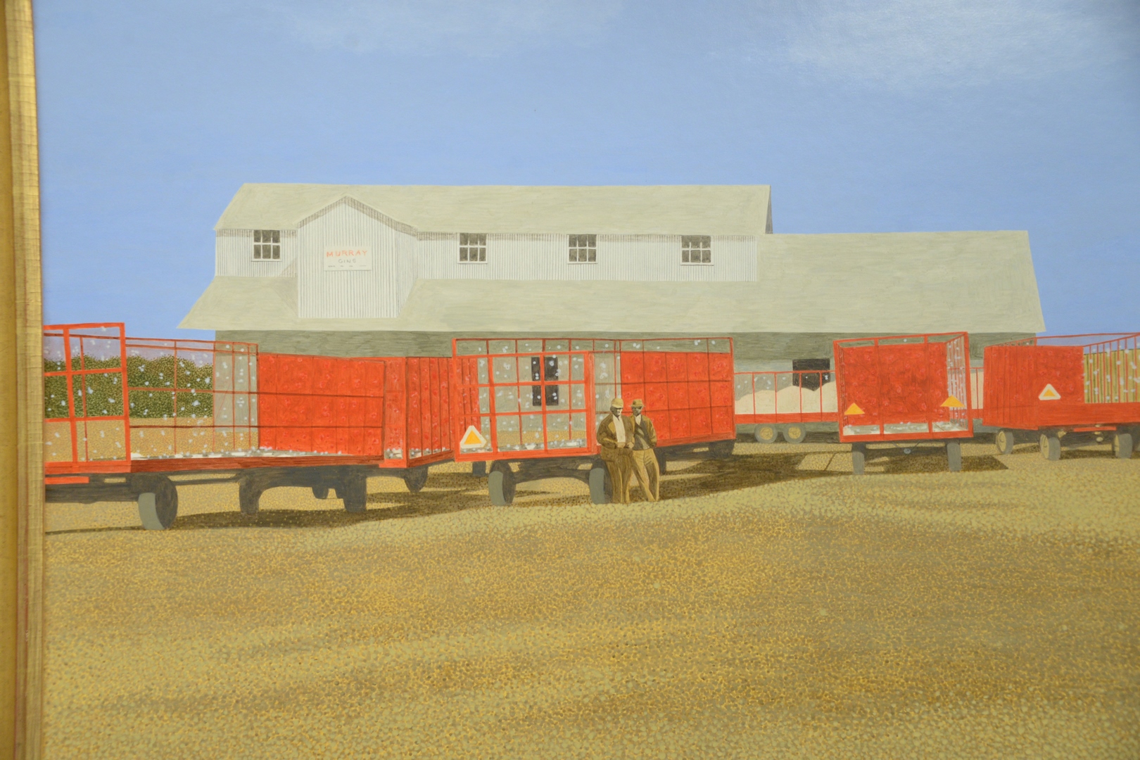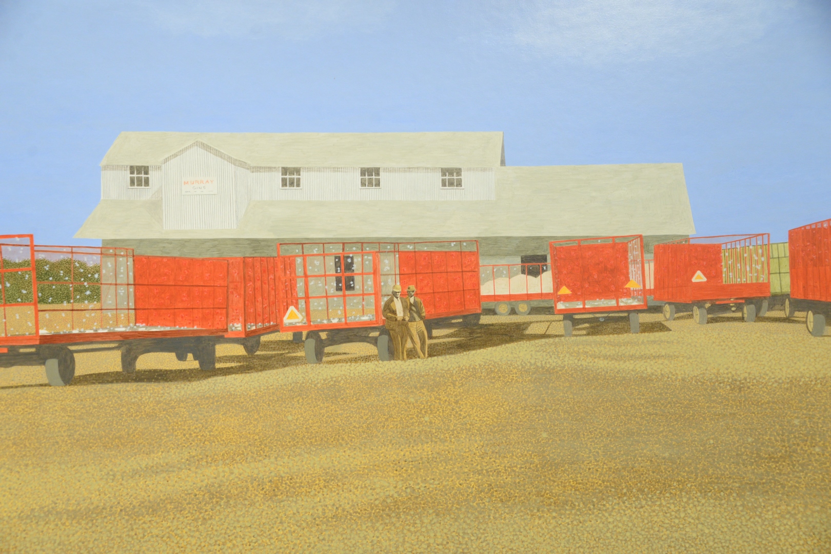 Lot 300: Carroll Cloar American, 1913-1993 Trailers at the Gin, acrylic on Masonite, signed lower left Carroll Cloar, titled and dated March 1972 on the reverse, 28 x 40.