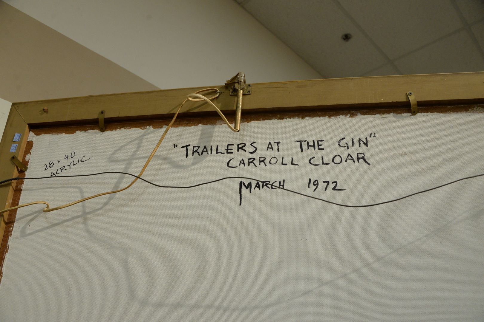 Carroll Cloar American, 1913-1993 Trailers at the Gin, acrylic on Masonite, signed lower left Carroll Cloar, titled and dated March 1972 on the reverse, 28 x 40.
