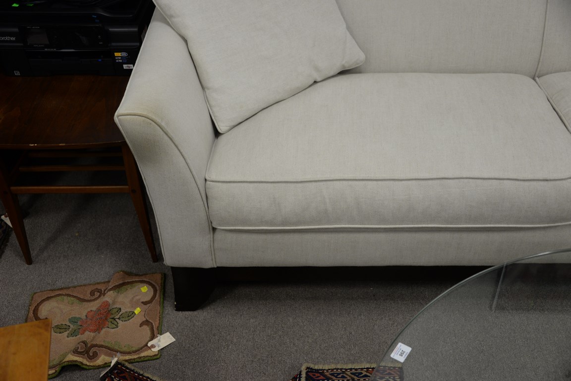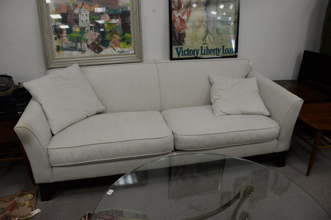 Contemporary Pottery Barn upholstered sofa, wd. 86 in., soil on right side.