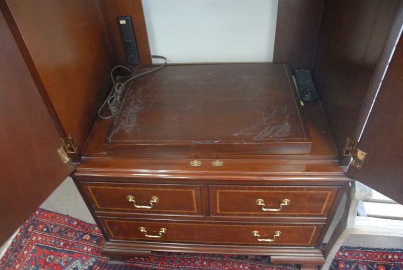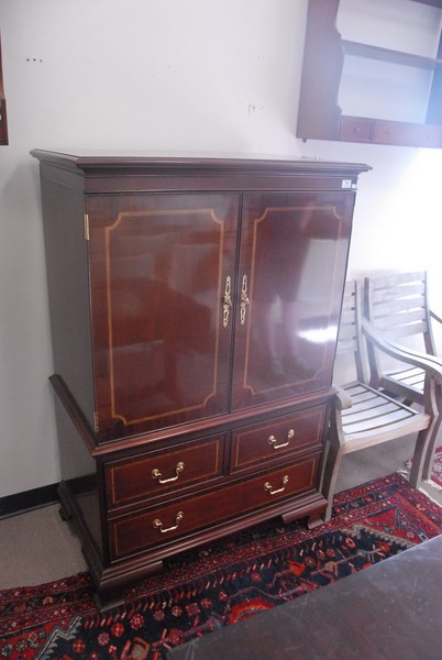 Councill Craftsman TV cabinet with inlays, ht. 58in. wd. 35 1/2in.