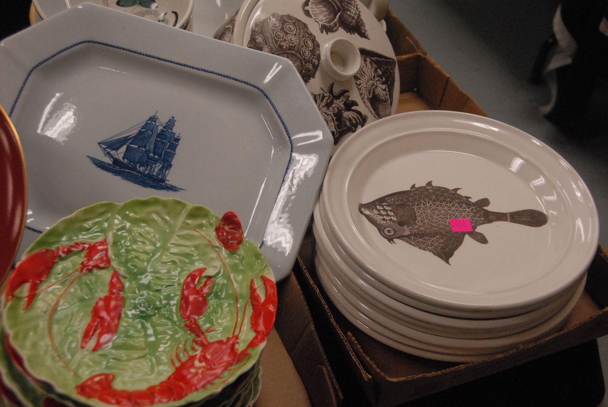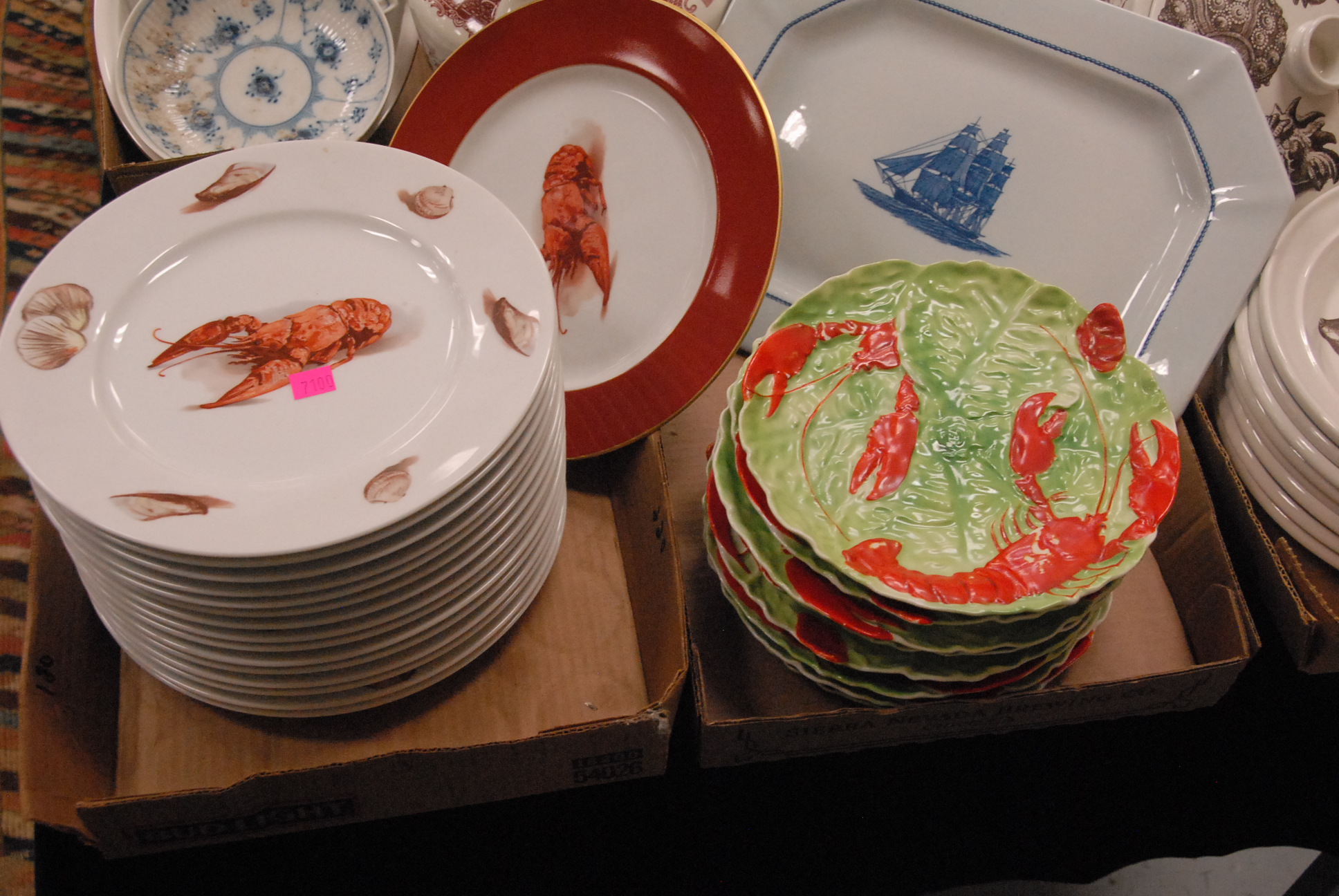 Five box lots to include lobster and fish plates, Royal Worcester, and Royal Copenhagen.