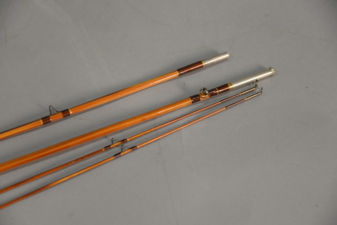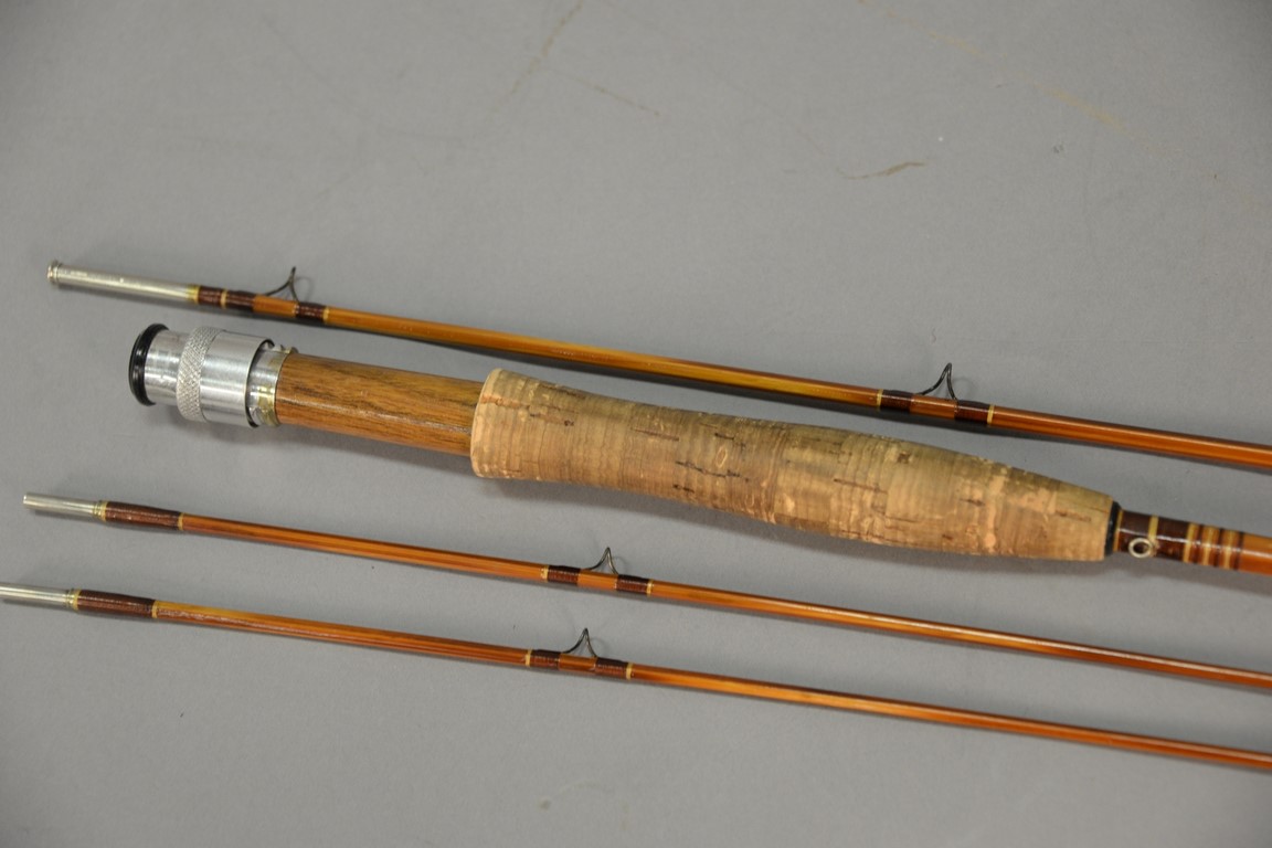 Lot 300: Gene Edward De Luxe #53 vintage three piece bamboo fly rod with case, lg. 7 1/2′, 4 1/2oz., with two full tips in original Eugene F….