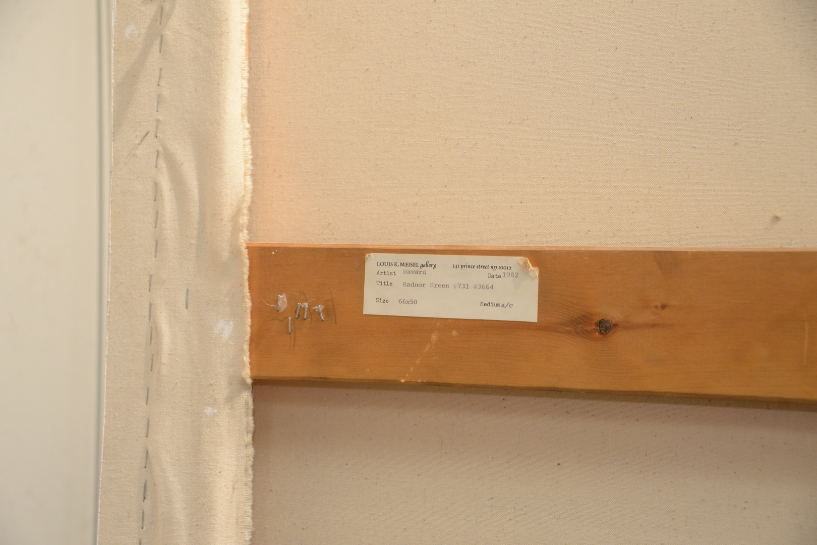 Lot 300: James Havard (American, b. 1937), Radnor Green, No. 731, 1982, acrylic on canvas, signed, titled, and dated on the reverse, Louis K. Meisel Gallery label on the reverse, 66″ x 50″.