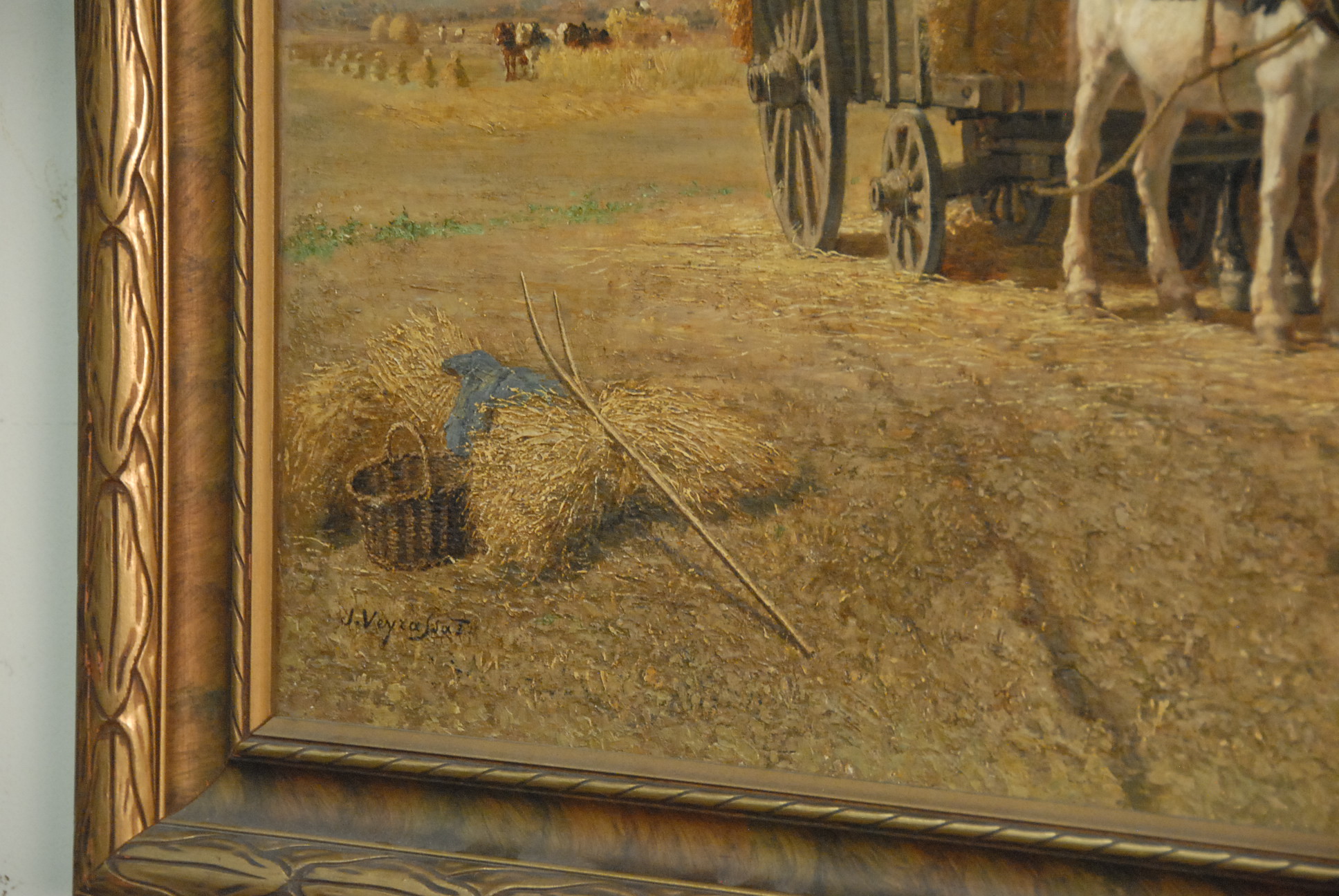 Jules Jacques Veyrassat 1828-1893 WORKING HAYERS oil on canvas signed lower left J. Veyrassat 35 X 49
