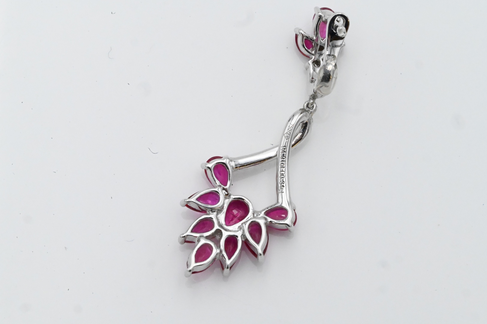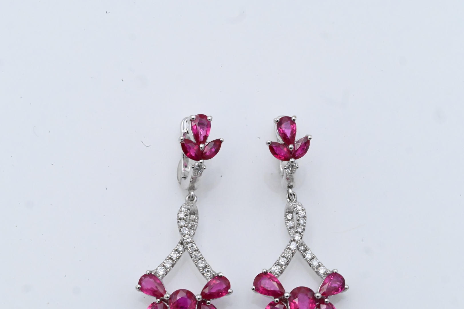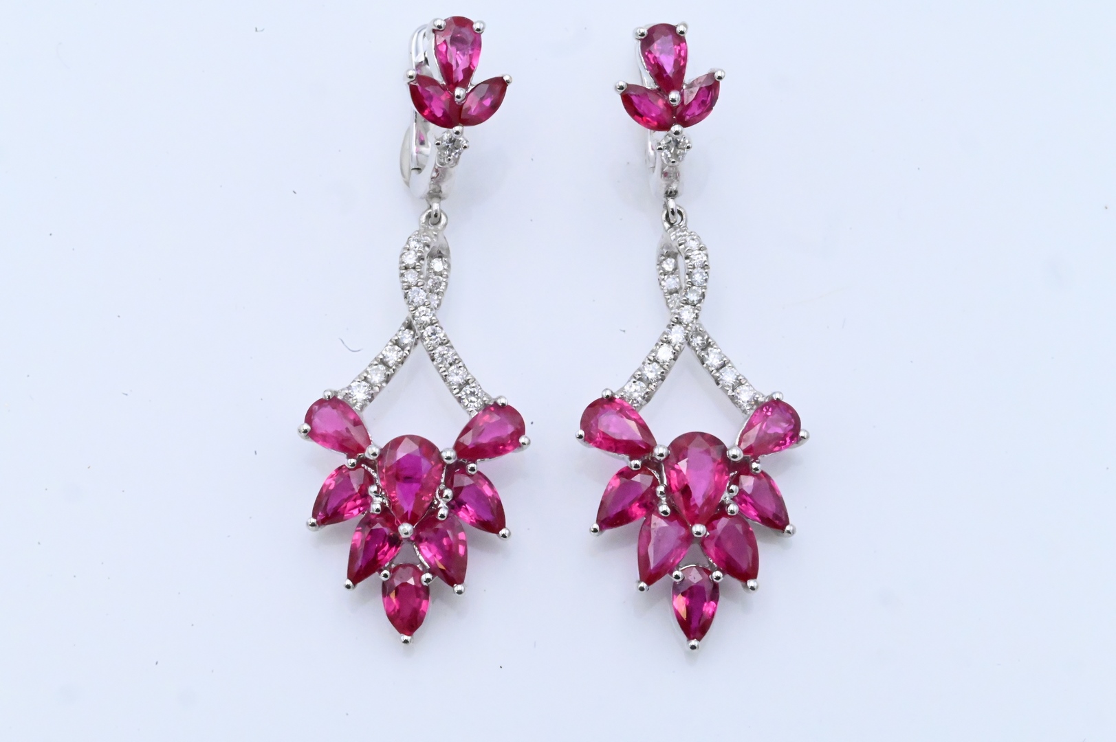 Pair of 18 Karat White Gold Pierced Earrings set with diamonds and rubies 7.8 grams total weight rubies 4.9 carat total weight