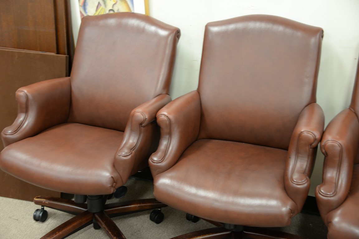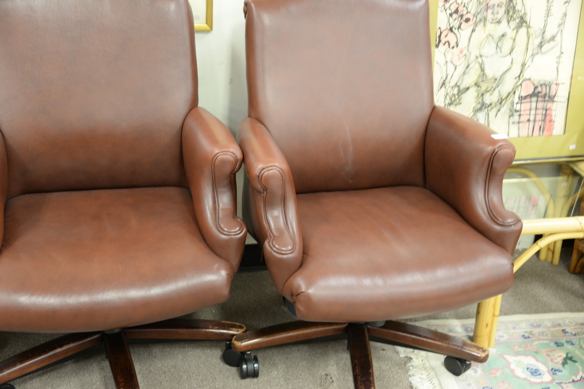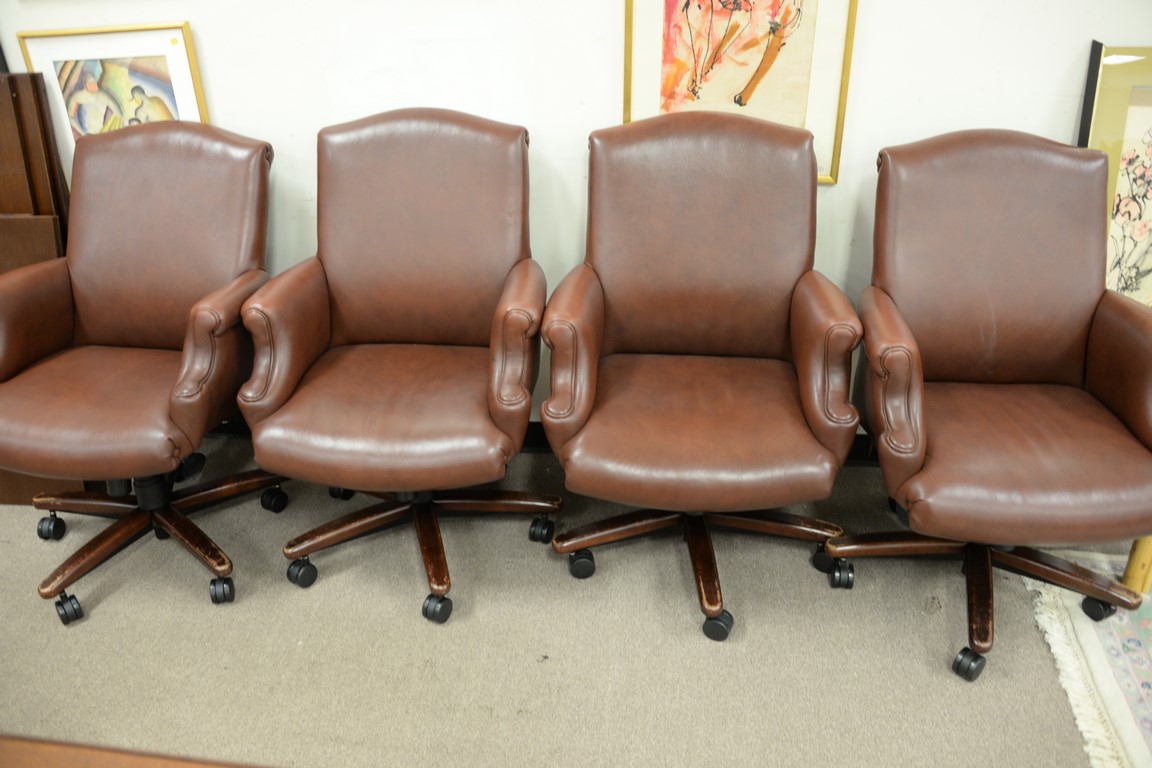 Set of four Cabot Wrenn leather armchairs having swivel bases.