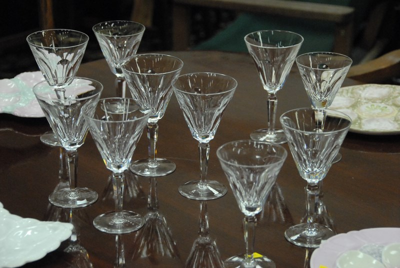 Lot 300: Set of nineteen Waterford crystal stems in two sizes chip on base and tops, ht. 7 in. & 6 1/2 in.