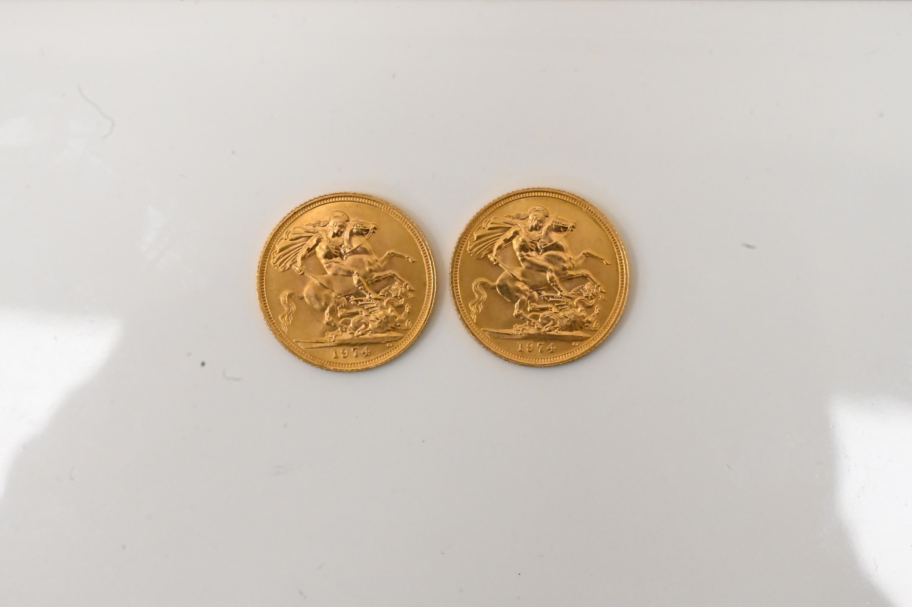 Two 1974 British Gold Sovereign 22 Karat, 7.3 grams pure gold, 14.6 grams total