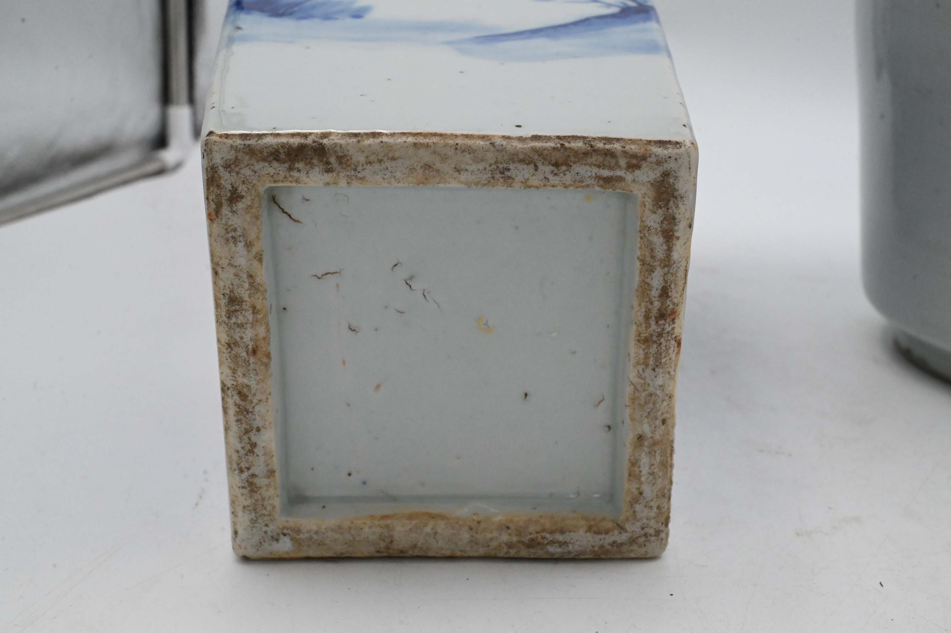 to include square vase having flared necks and double foo dog handle knockers with scholar and mountain landscape along with planter having bird and tree branch motif with drainage hole