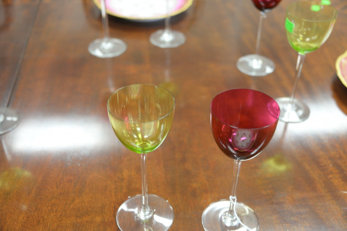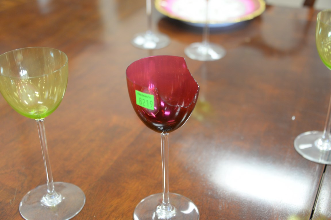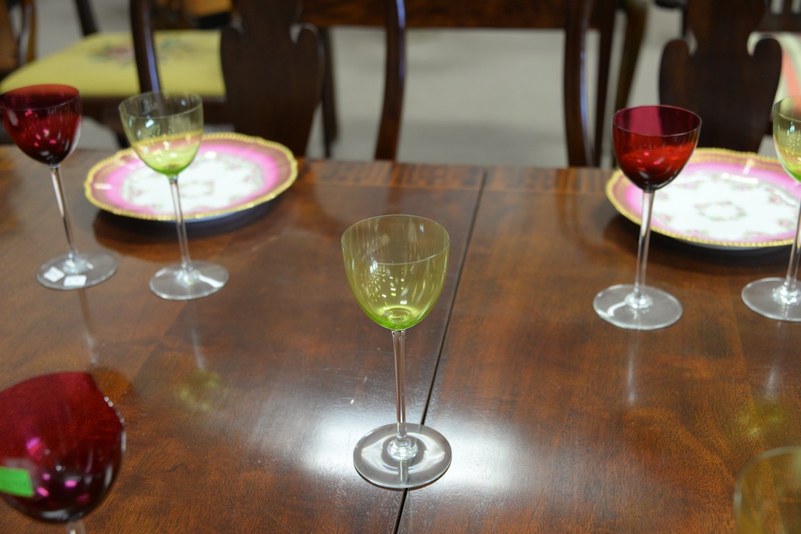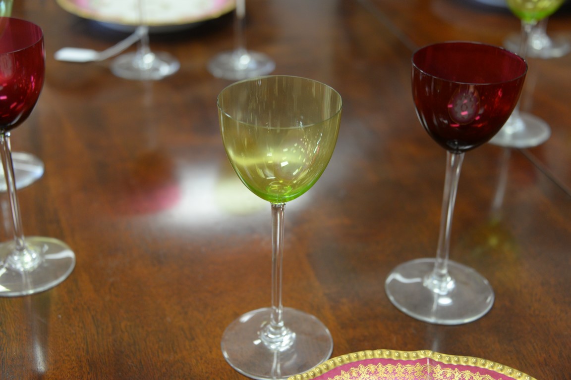 Lot 300: Two sets of Baccarat stems, thirteen total including seven having green top and six with ruby red tops one red as is.