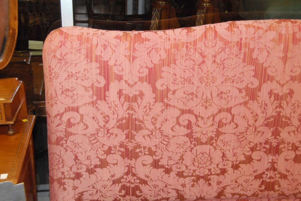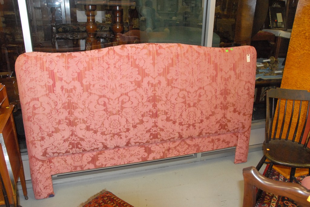 Upholstered rose colored king size headboard.