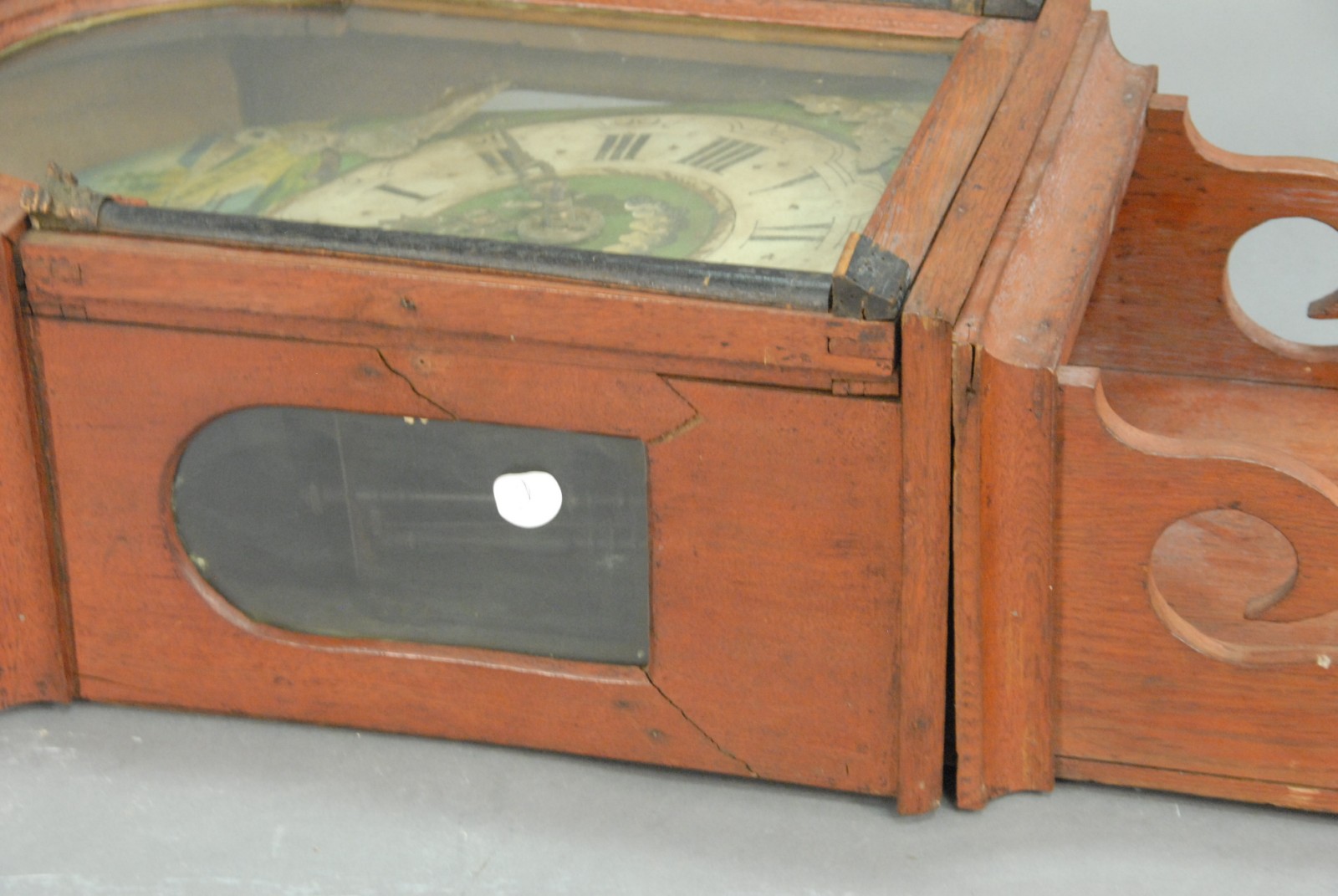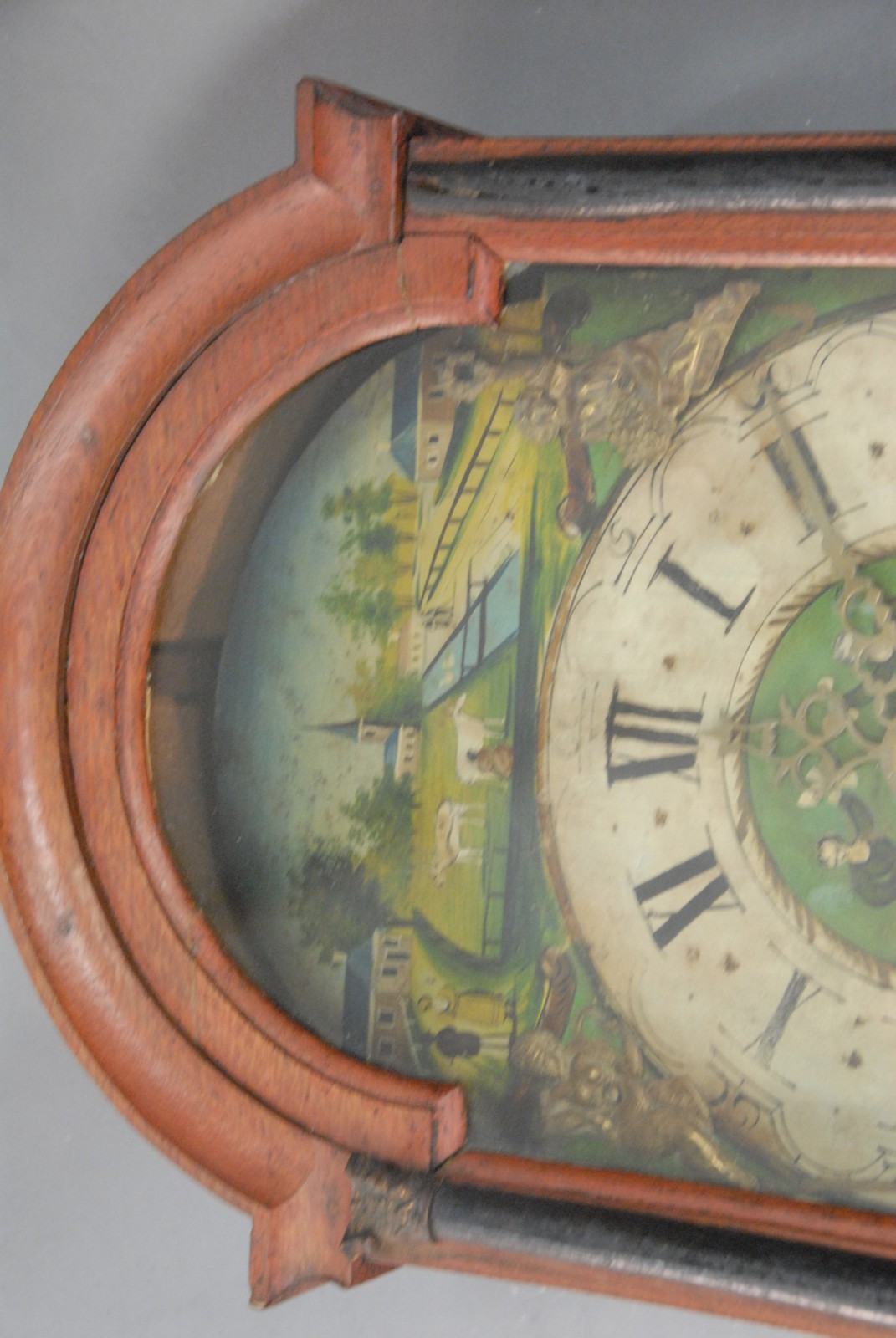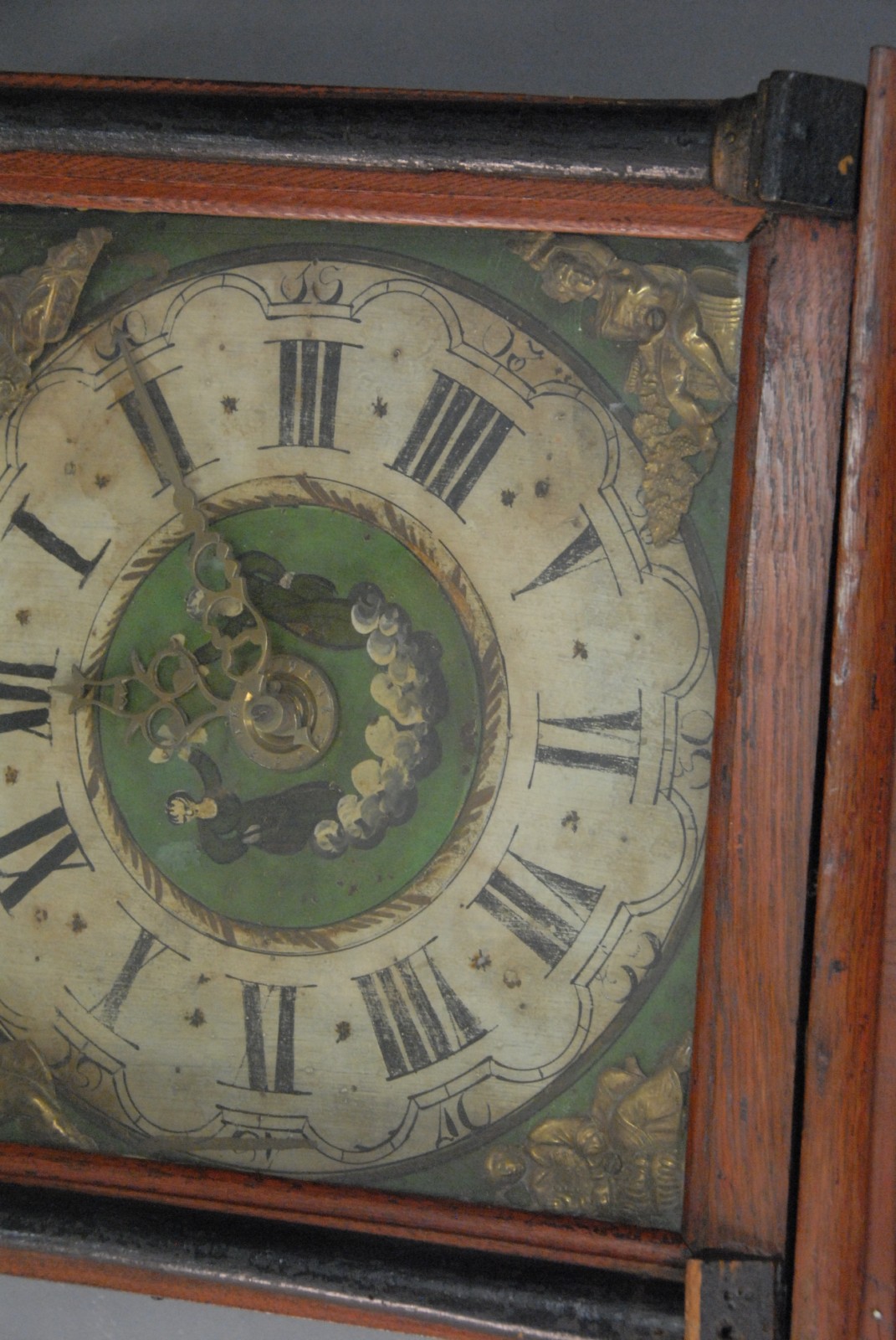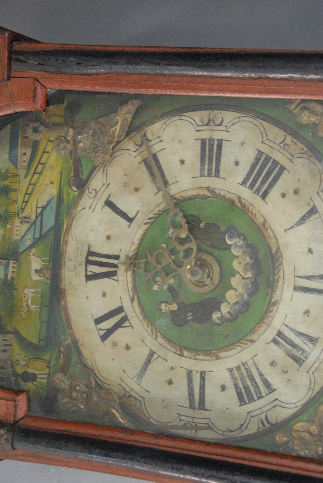 Dutch wag on the wall clock with painted tombstone dial and brass works late 18th early 19th century no weights or pendulum.