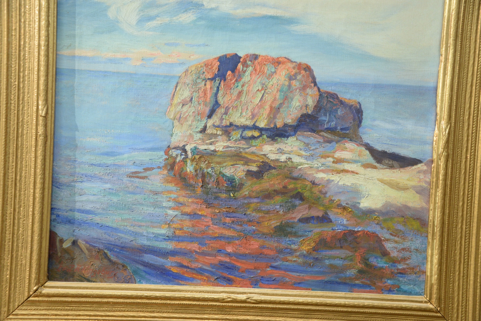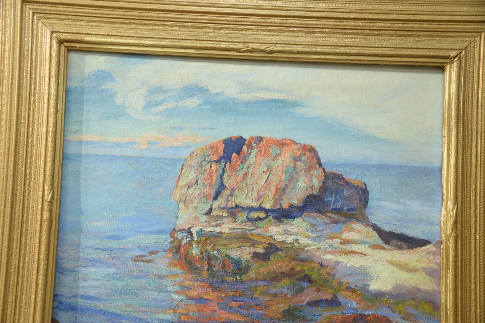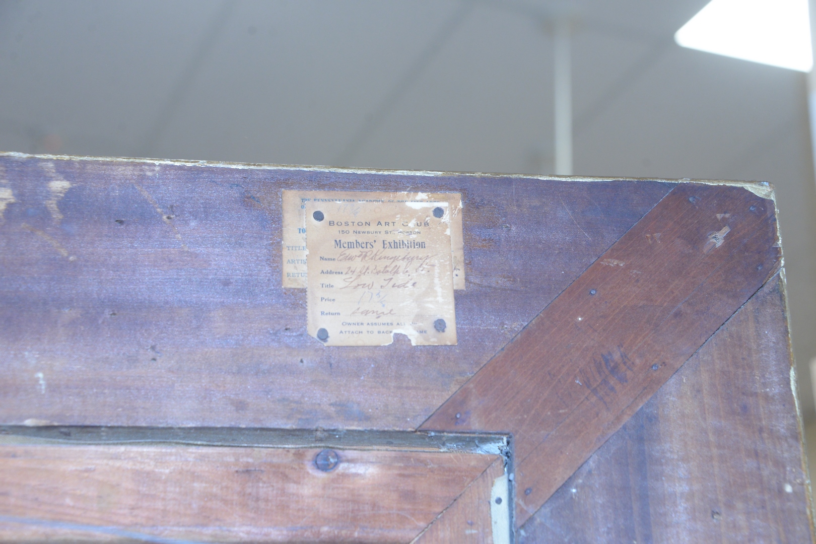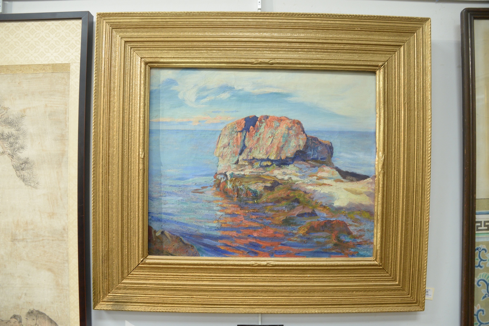 Lot 301: Edward Reynolds Kingsbury, American, 1855 – 1940, Low Tide, oil on canvas, signed lower left Edw R. Kingsbury, 20 x 24, with a Boston Art Club Exhibition label and a partial Poland Spring…Maine State Building label adhered to frame.