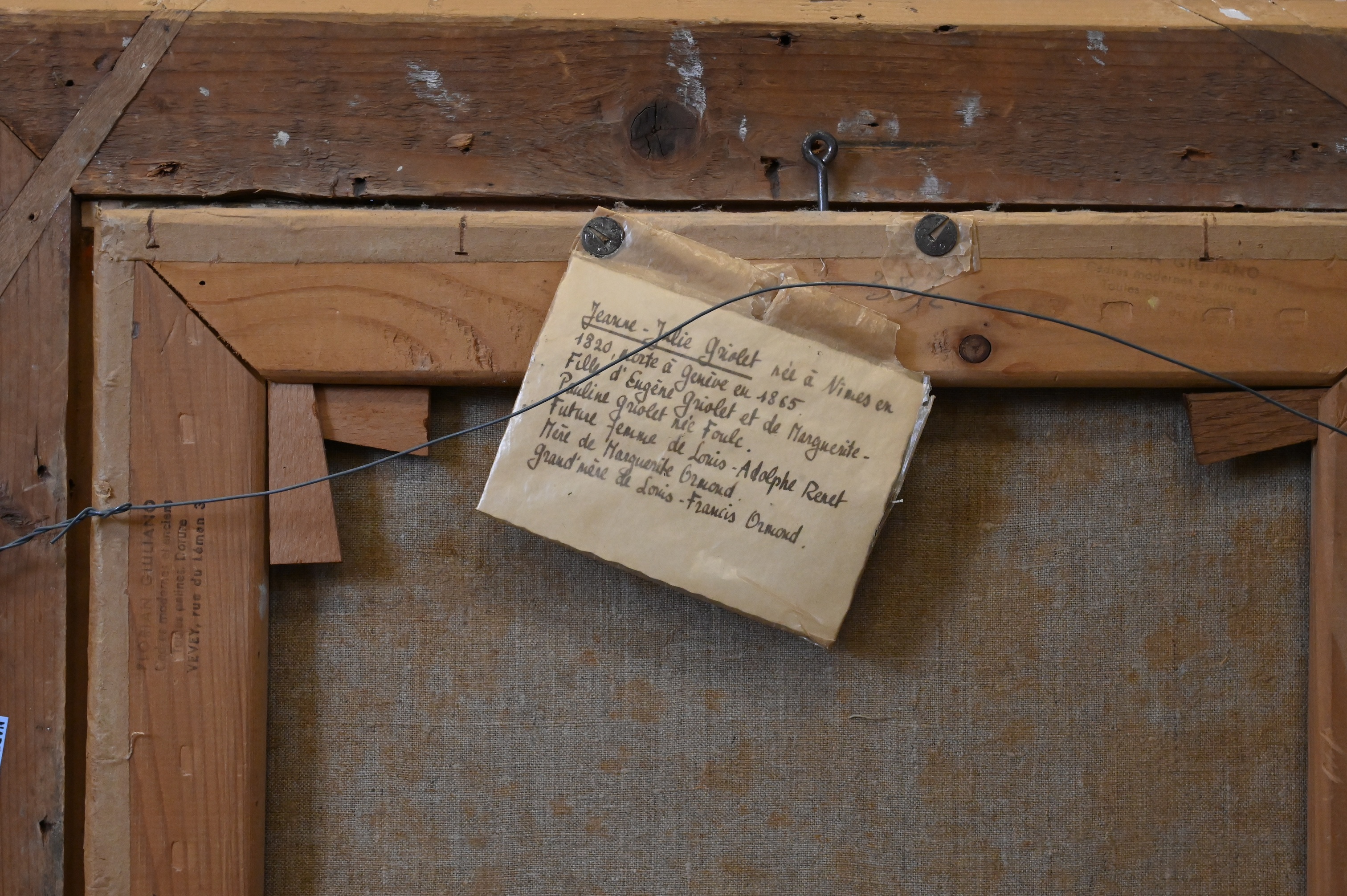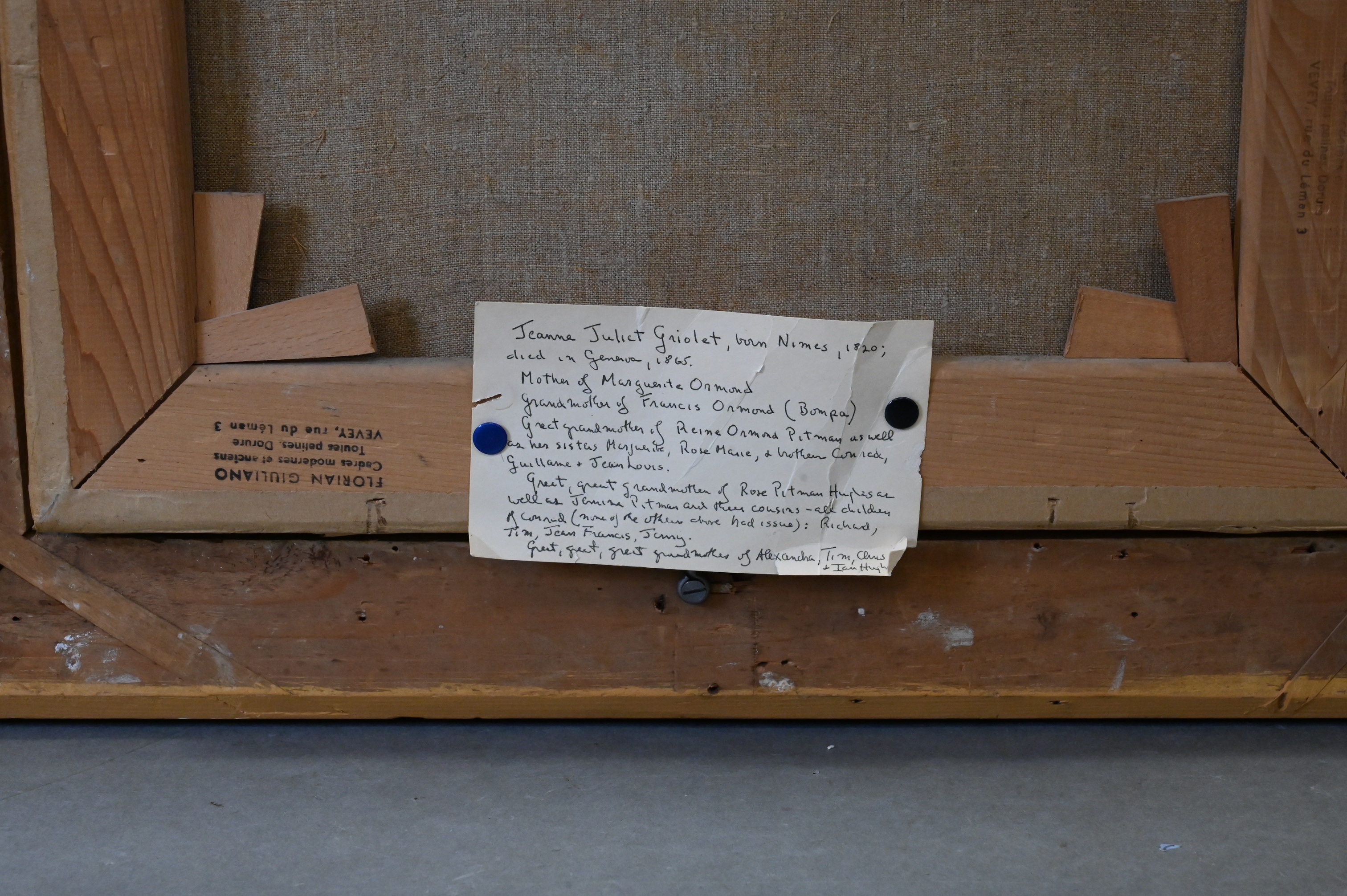 Genealogy of sitter: The sitter was the mother of Marguerite Ormond; Grandmother of Francis Ormond (Bompa); Great Grandmother of Reine Ormond Pitman, as well as her sisters Marguerite, Rosemarie, and brothers Conrad, Guillaume and Jean Louis; Great, Great Grandmother of Rose Pitman Hughes, as well as Jeanine Pitman and three of their cousins (all children of Conrad, none of the others above has issue), Richard, Tim, Jean Francis, Jinny; Great, Great, Great Grandmother of Alexandra, Tim, Chris, and Ian Hughes