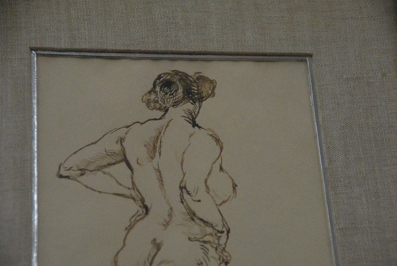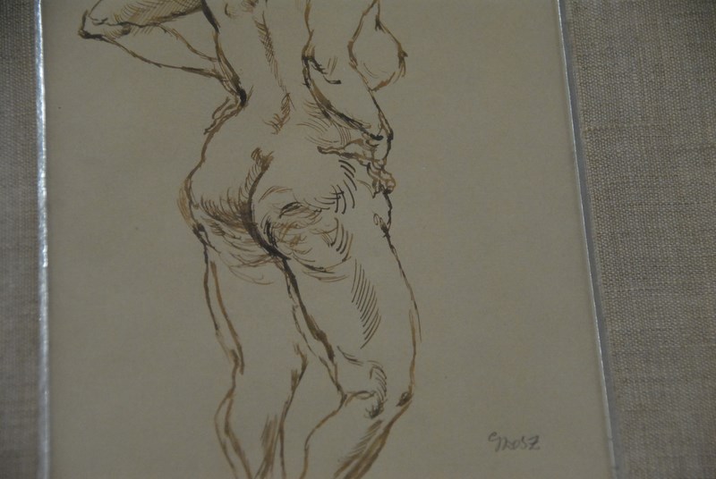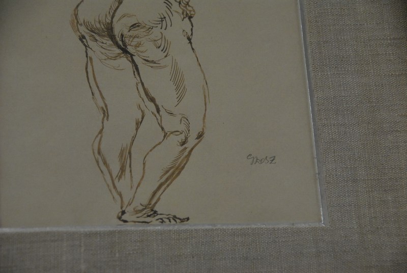 Lot 301: George Ehrenfried Grosz 1893-1959 STANDING NUDE FEMALE pen and ink on paper signed lower right Grosz 11 x 7 sight size