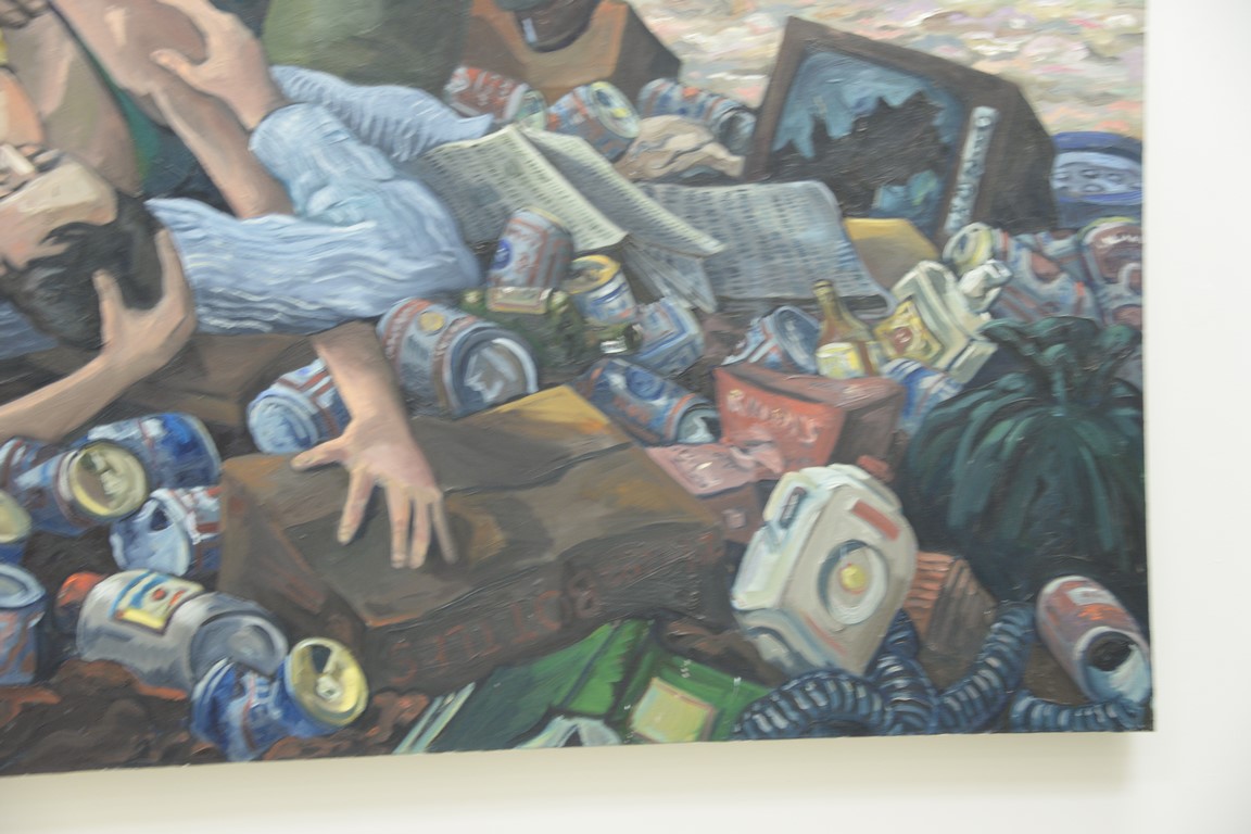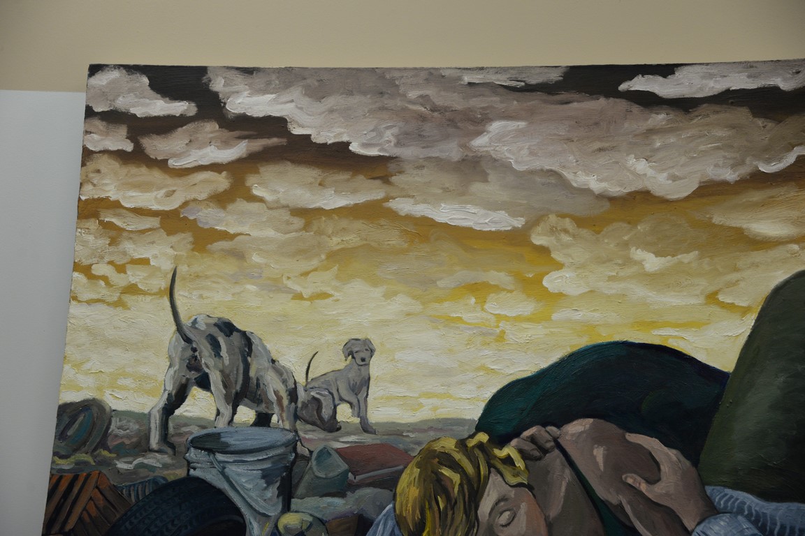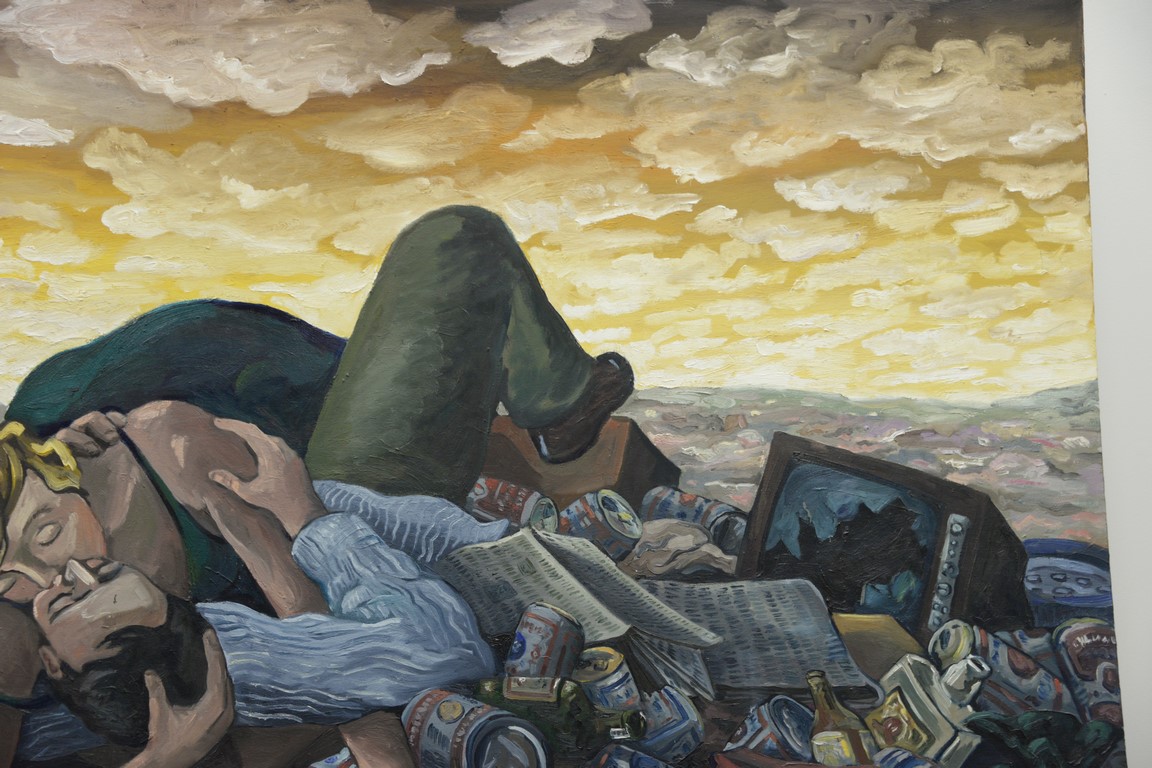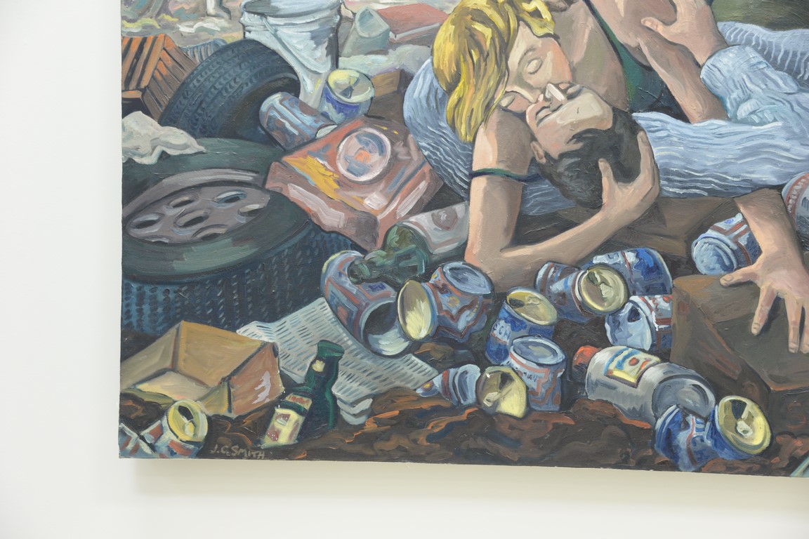 Jerry C. Smith 20th century oil on canvas Kissing at the Dump signed lower left: J. C. Smith 60 x 84 1/4 Provenance: Collection of Ruth and Jerome Siegel