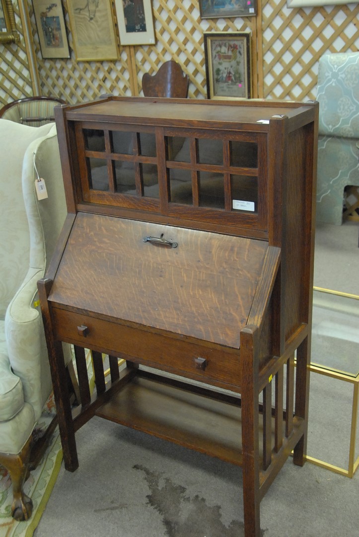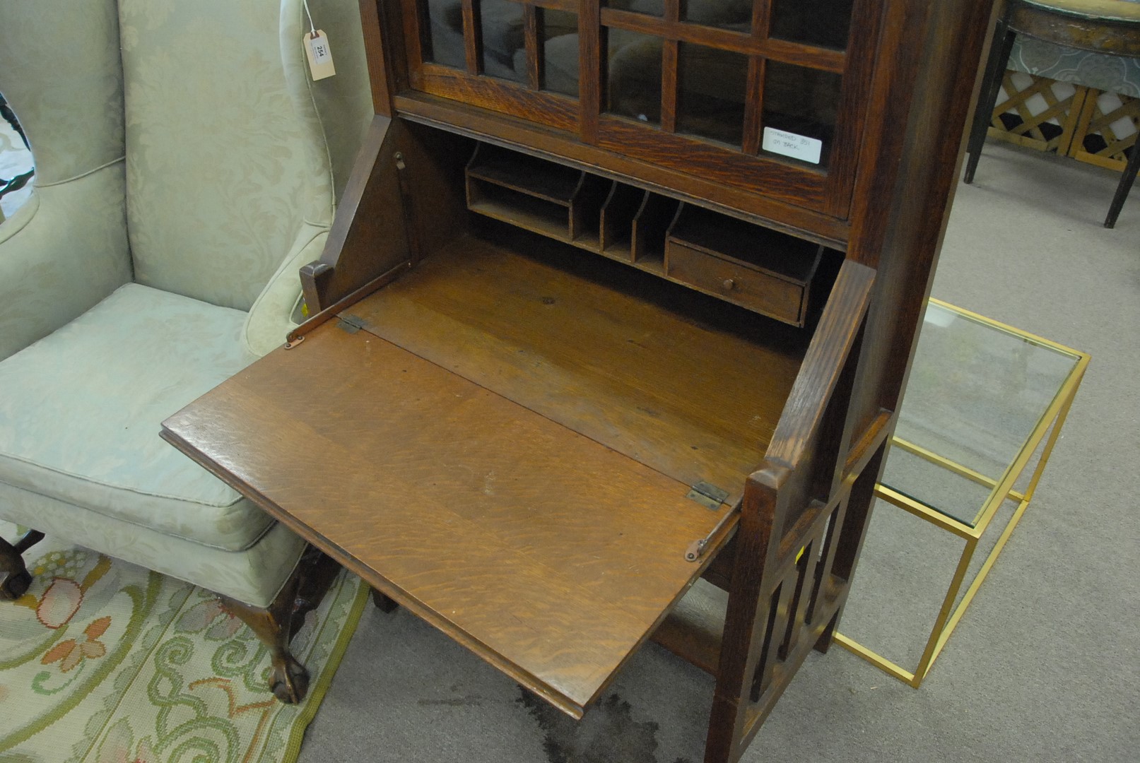 Lot 301: Mission oak secretary desk. ht. 50 in. wd. 30 in. dp. 17 1/2 in.