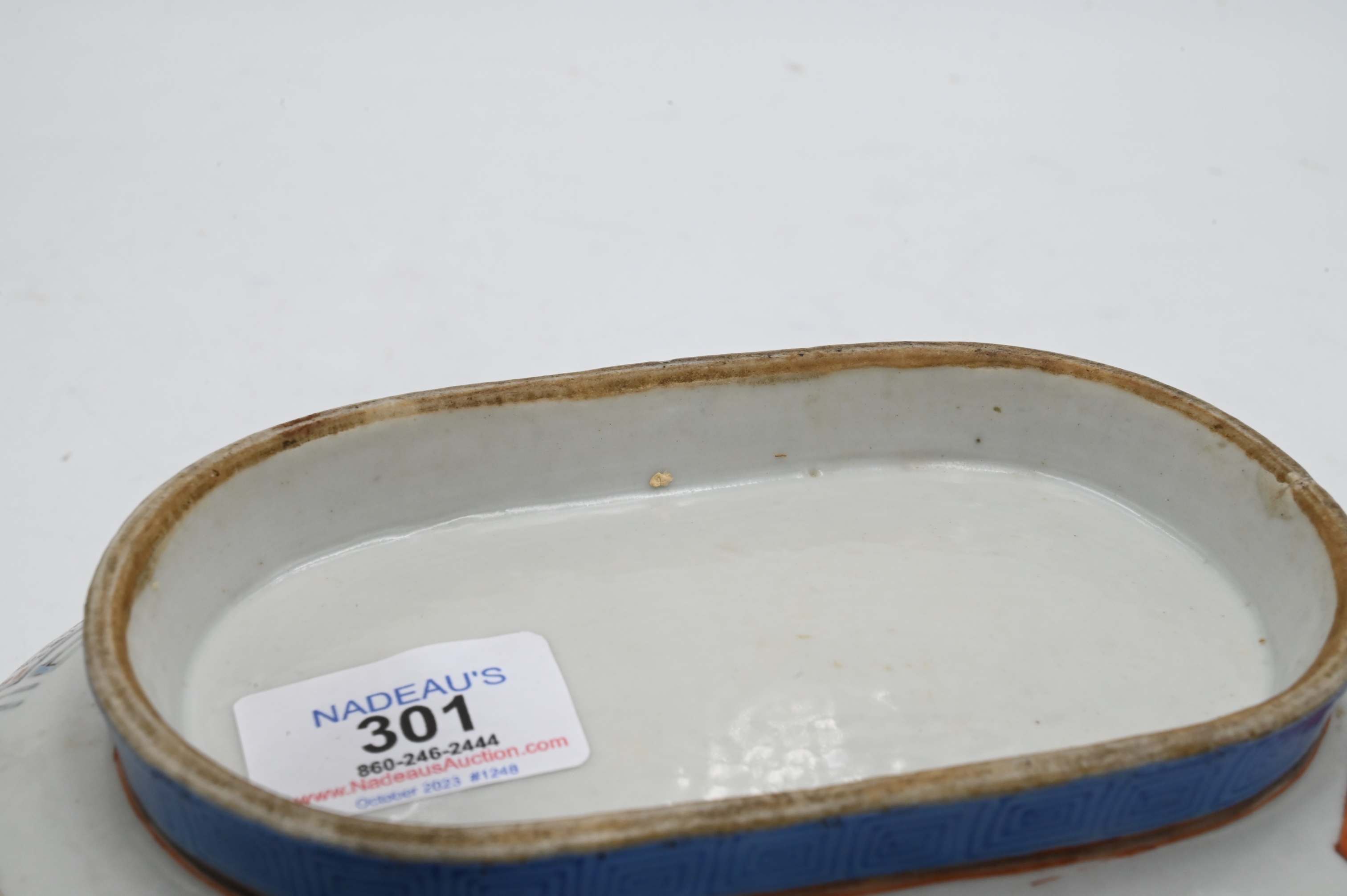 Lot 301: Oval Chinese Porcelain Footed Bowl
