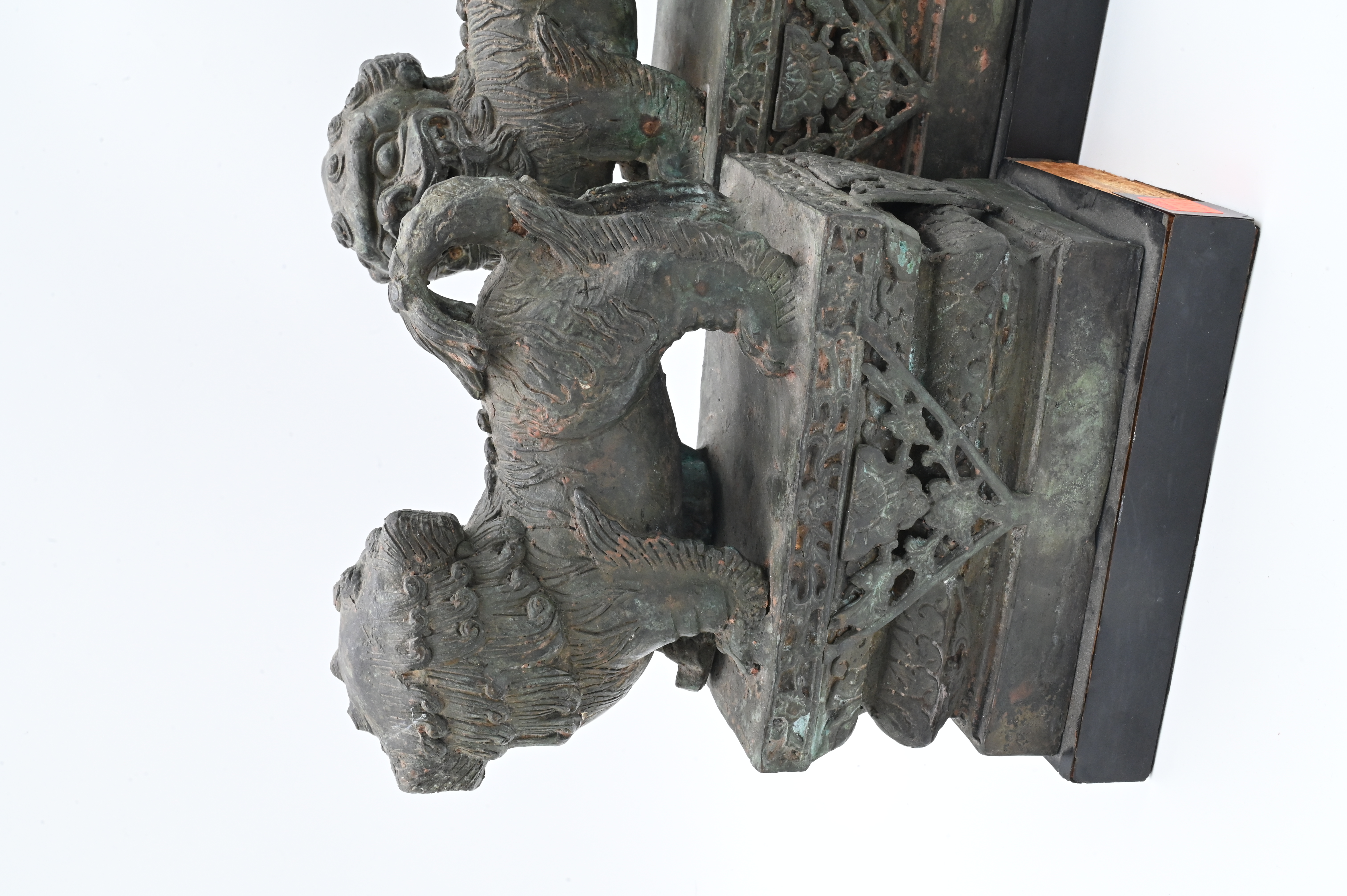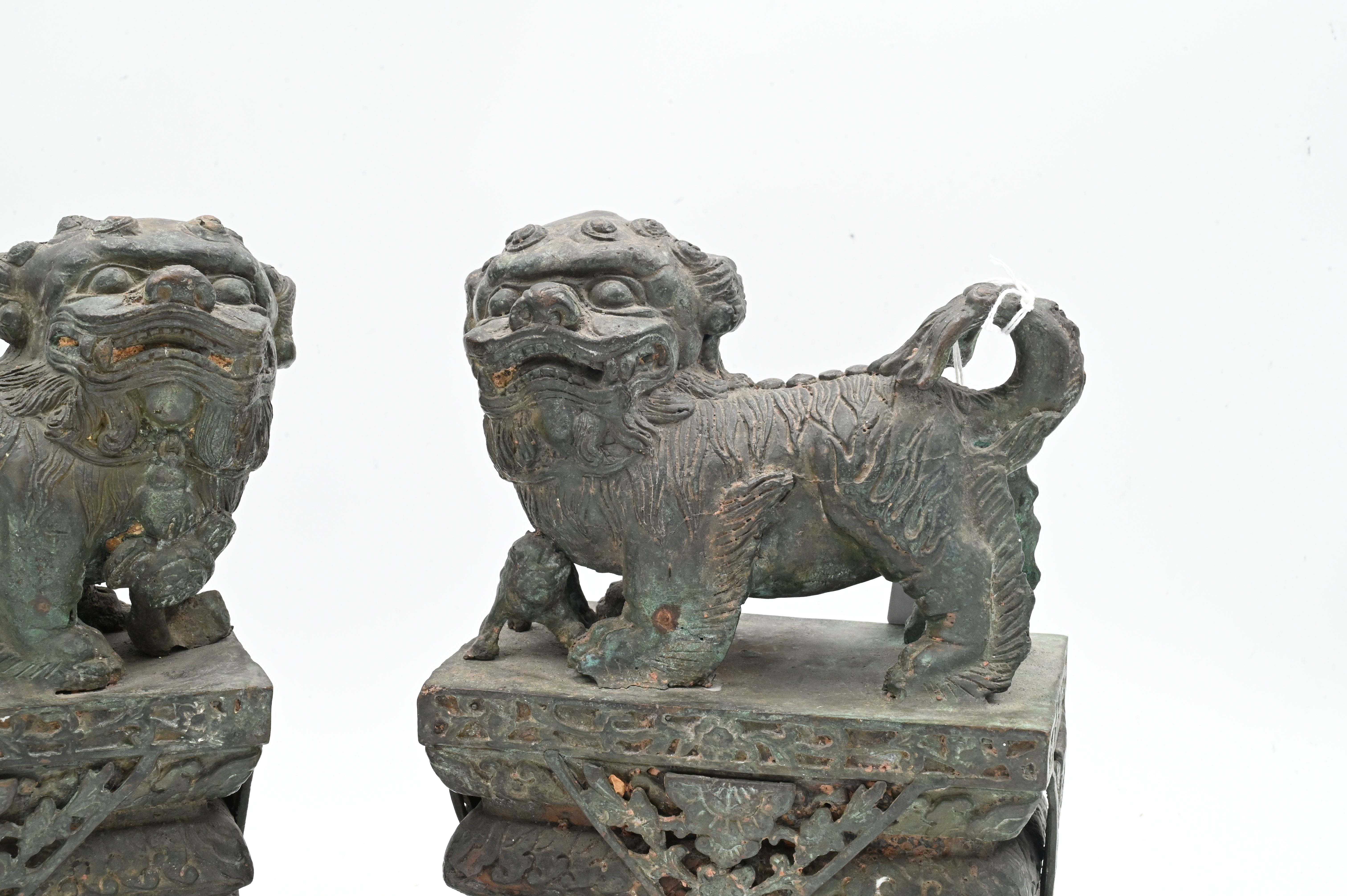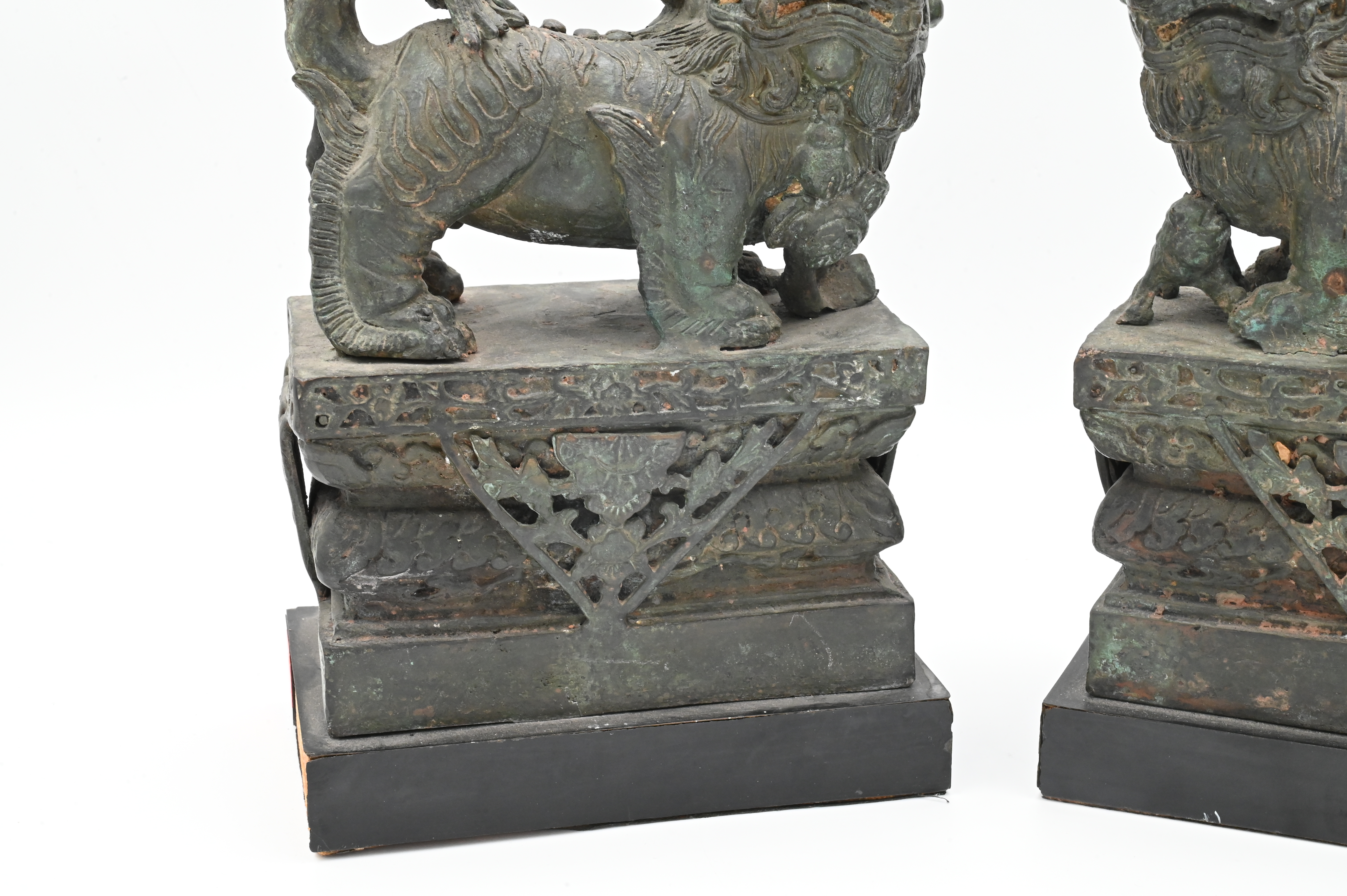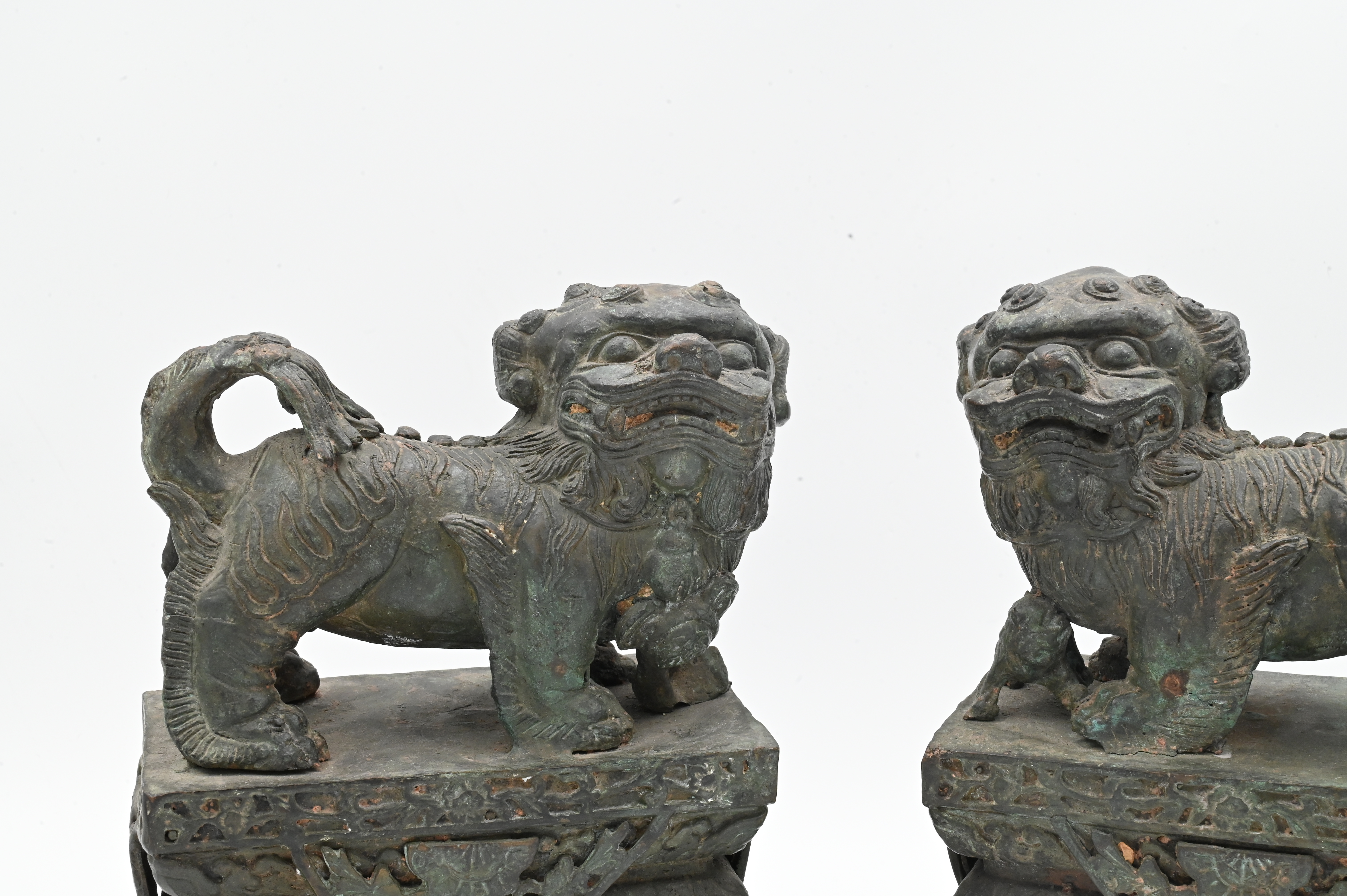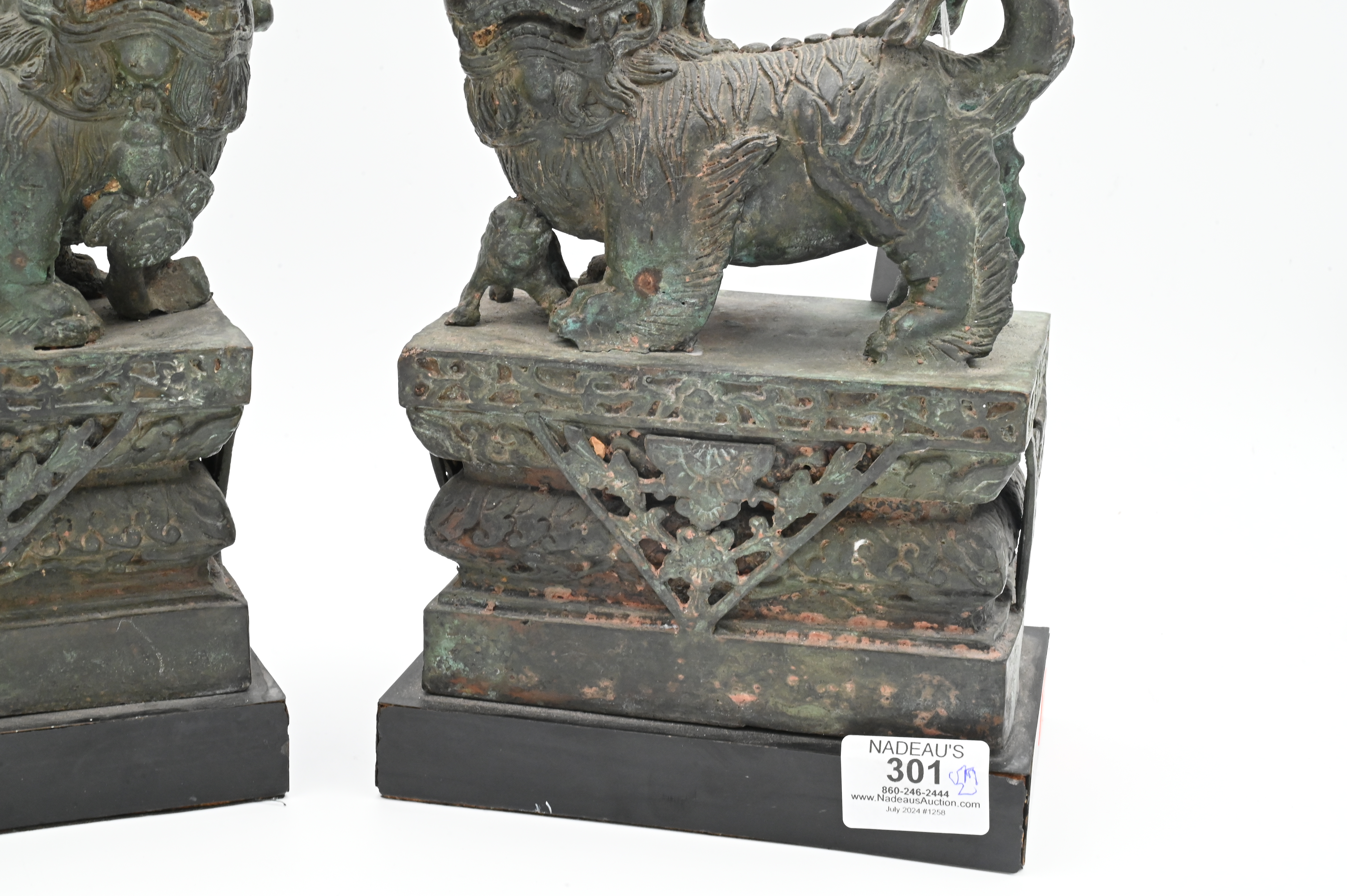 Lot 301: Pair of Bronze Foo Dogs on Pedestal Base