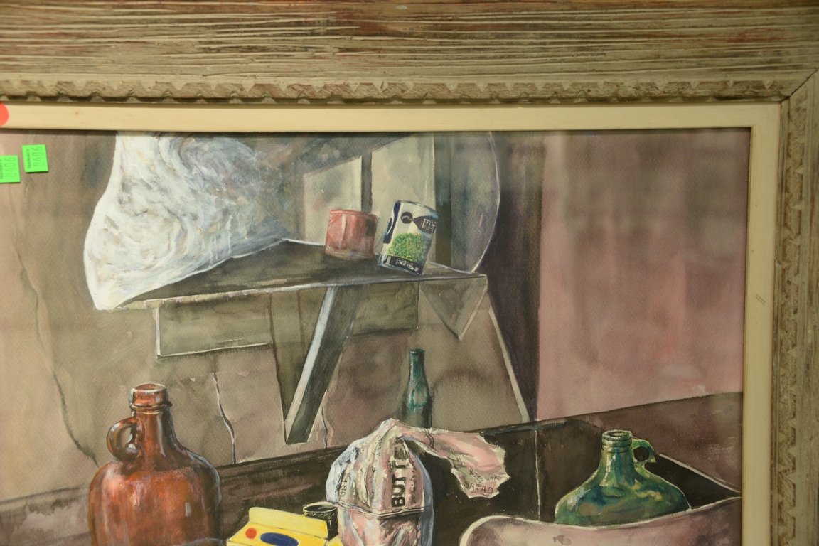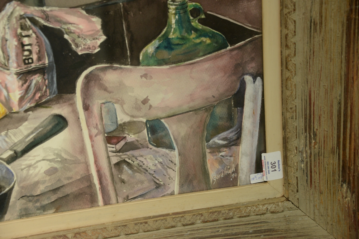 Lot 301: Rex Goreleigh 1902-1986 watercolor Still Life Cooking Mess signed lower right Goreleigh 74′, written on verso Still Life Migrant…