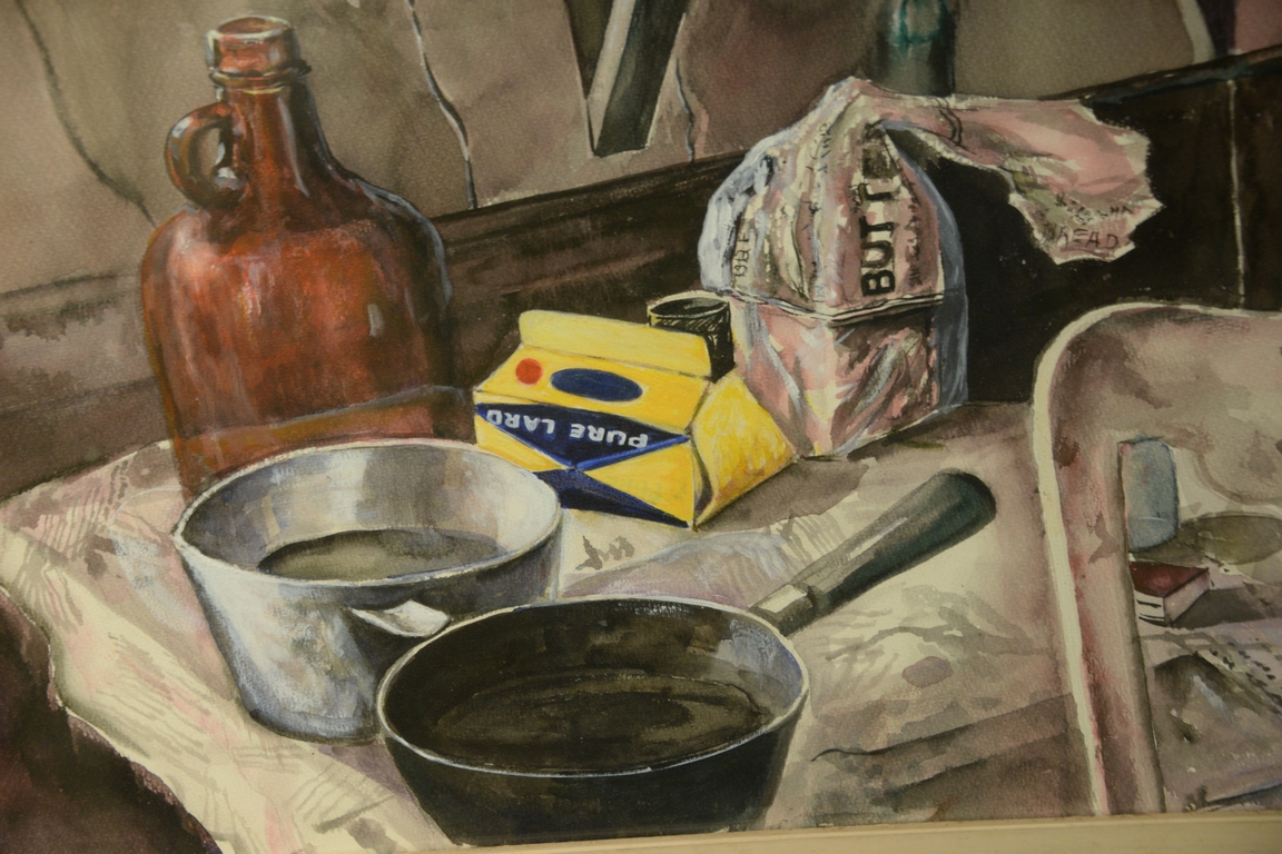 Rex Goreleigh 1902-1986 watercolor Still Life Cooking Mess signed lower right Goreleigh 74′, written on verso Still Life Migrant Series Alainlocke Society Princeton sight size 19 1/2 x 23 1/2 Provenance: Collection of Anne Jones Willis and the late John Ralph Willis, New Jersey