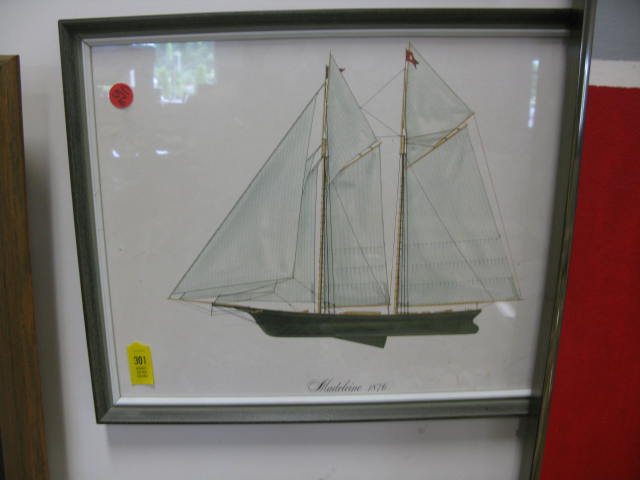 Set of 6 framed ship prints along with a group of unframed ship prints